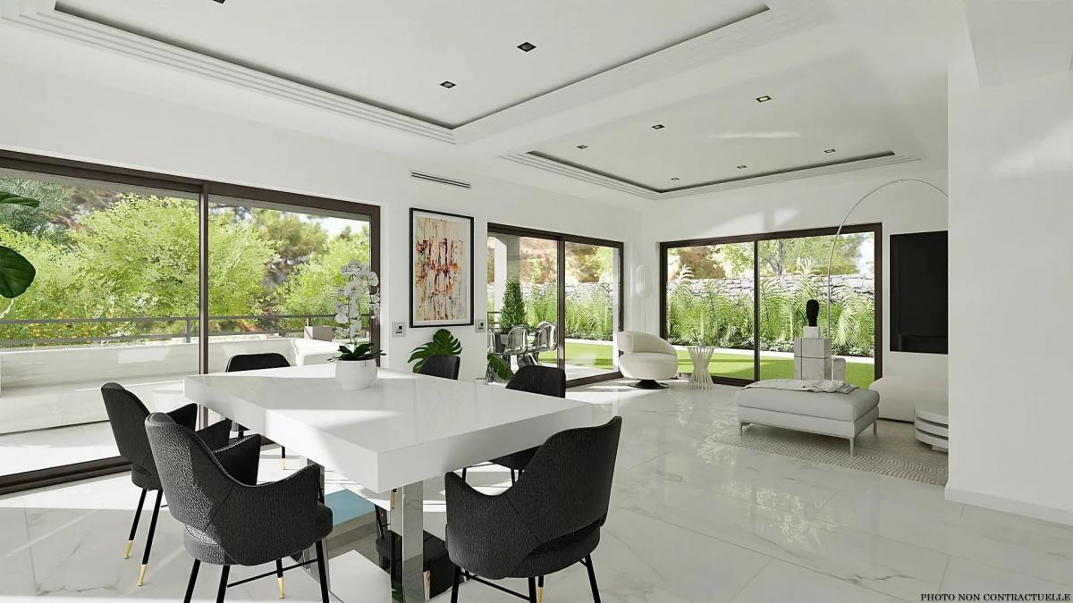Built with high-quality materials, the villa combines elegance and durability. The living spaces are designed to be spacious and filled with light, fostering a welcoming and convivial ambiance. Each bedroom is fitted with an en-suite bathroom as well as dressing rooms or closets, providing optimal comfort.