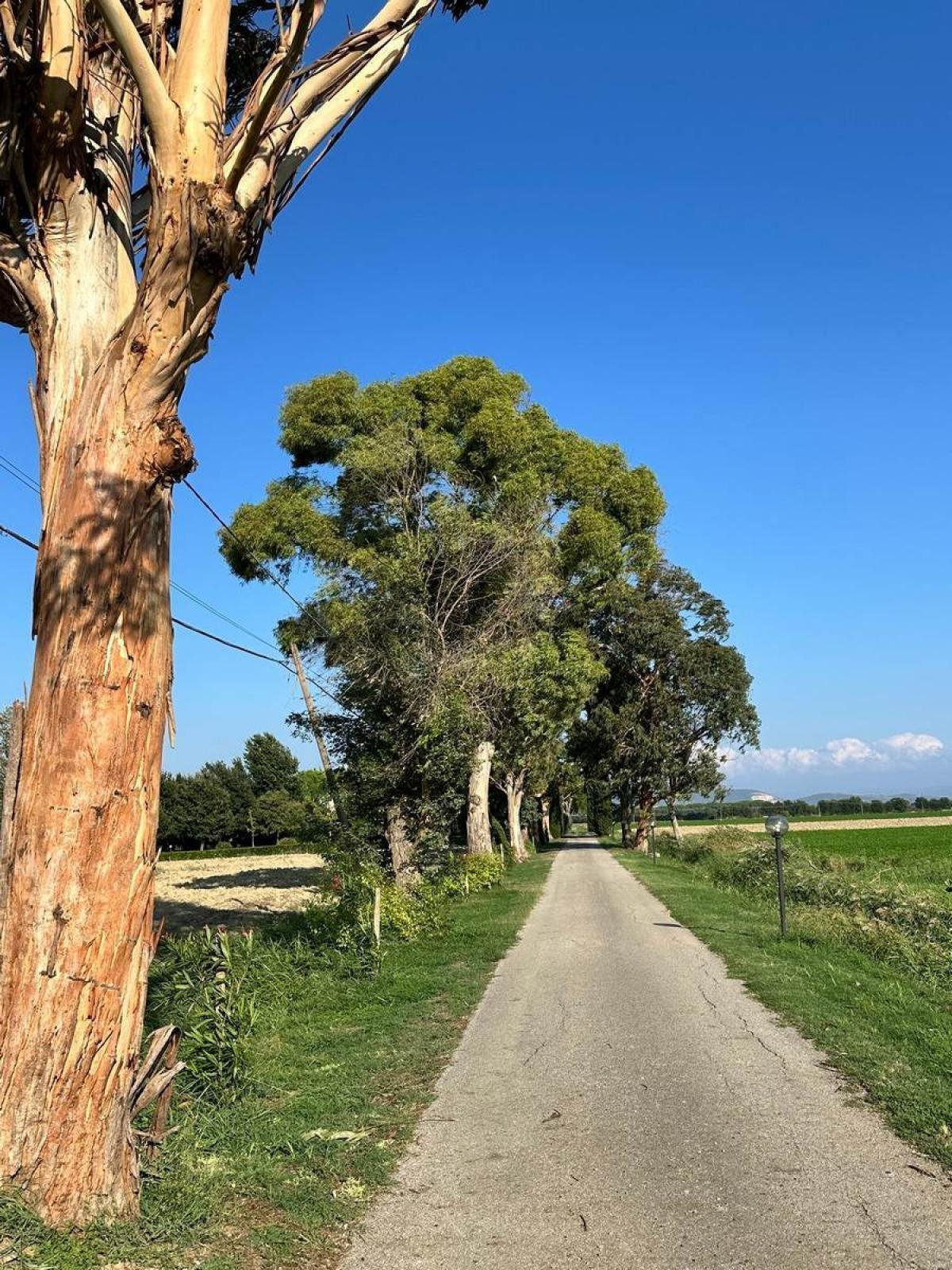 The 27-hectare agricultural land includes 12 hectares of orchards and olive groves with 400 certified organic trees, as well as arable land and a former barn of approximately 200 sq m used for equipment storage. The property is energy and water sustainable, thanks to an 80-meter deep well and a 52 kW photovoltaic system installed in 2011.