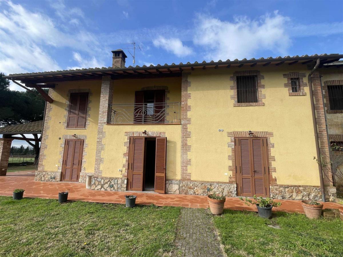 Exterior Description: The property is surrounded by a spacious garden of 2,000 sqm. in the 4.6 ha of agricultural land, there are 230 olive trees producing about 40 quintals of olives annually. There is a 9 kW photovoltaic system that generates 13,000 kW of electricity per year. The land also includes 3 irrigation wells and an imhoff tank. The farmhouse is complemented by a second building of about 15 sqm, used as a technical room for the boiler and autoclave.