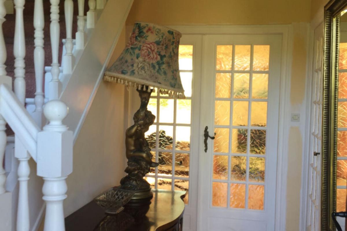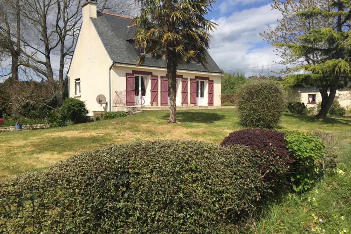 Lovely detached house with full basement facility for sale very close to the village of GUEGON with shops. Living room/lounge with fireplace, terrace. Fitted kitchen, shower room + wc Large entrance. wc Small ,storage room and one bedroom. Upstairs: beautiful staircase, large landing, two bedrooms, an office, another shower room with wc. Full basement with garage, boiler room (oil), laundry room. Small courtyard for several vehicles, leasure garden, open view. All on 1583 m2 of ground. (5.00 % fees incl. VAT at the buyer's expense.)Further informations