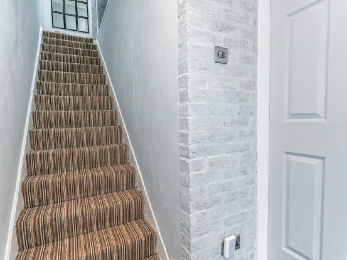 Upstairs, three bedrooms are served by a family bathroom with a white three-piece suite and an electric over-bath shower.