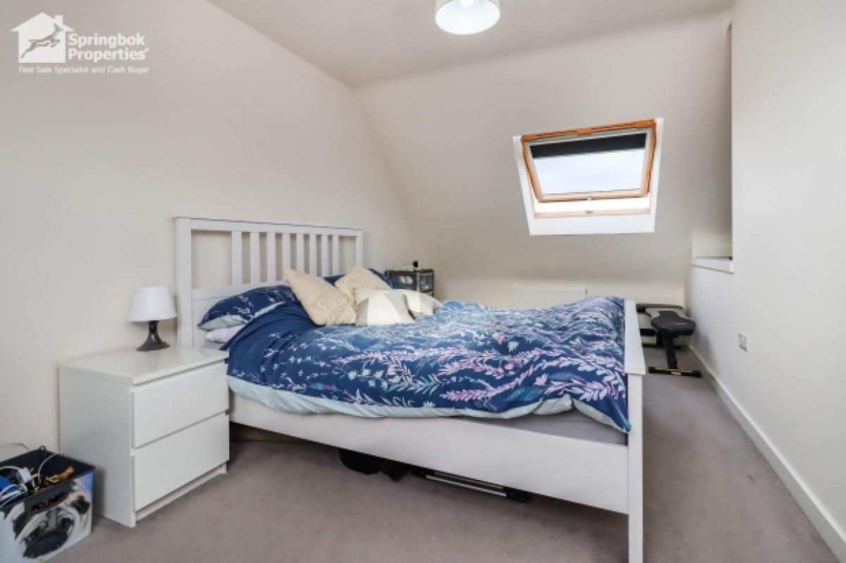 The first floor provides two well-arranged rooms and a family bathroom with contemporary fixtures, while the entire top floor is dedicated to the principal bedroom, which features two roof windows allowing natural light and elevated views towards Haughmond Hill.