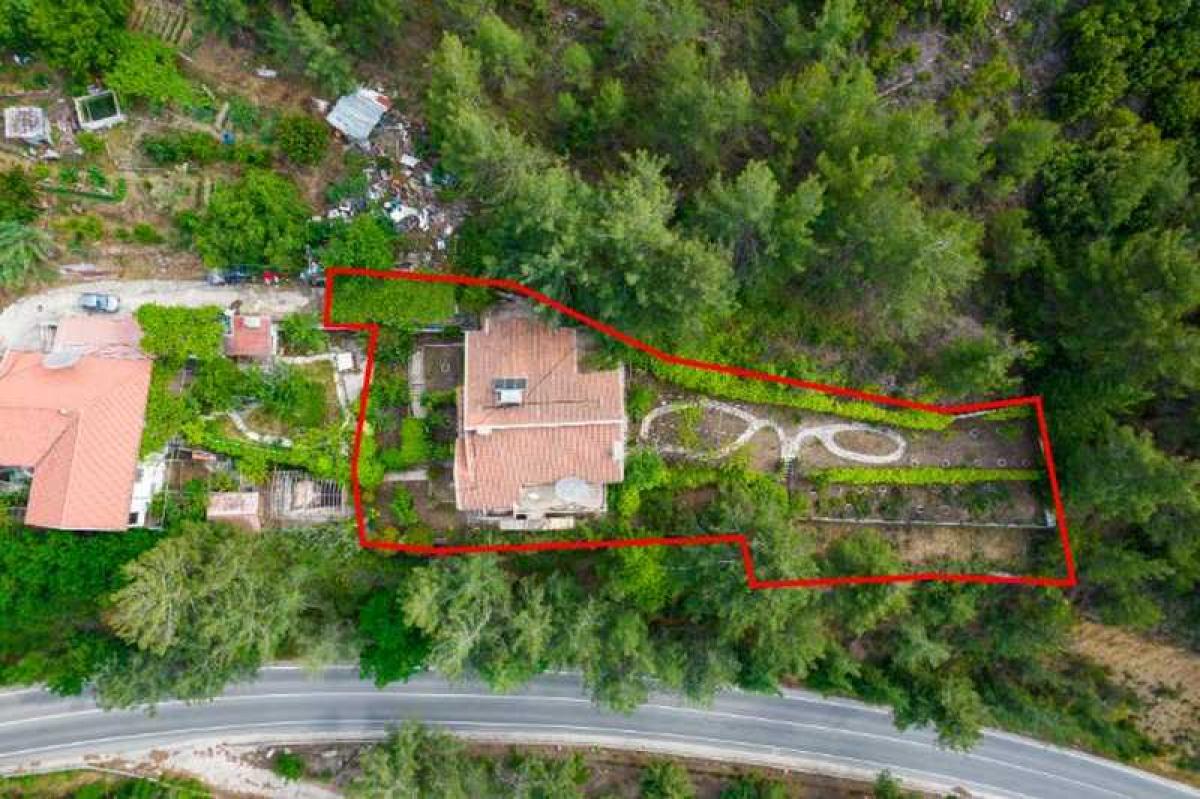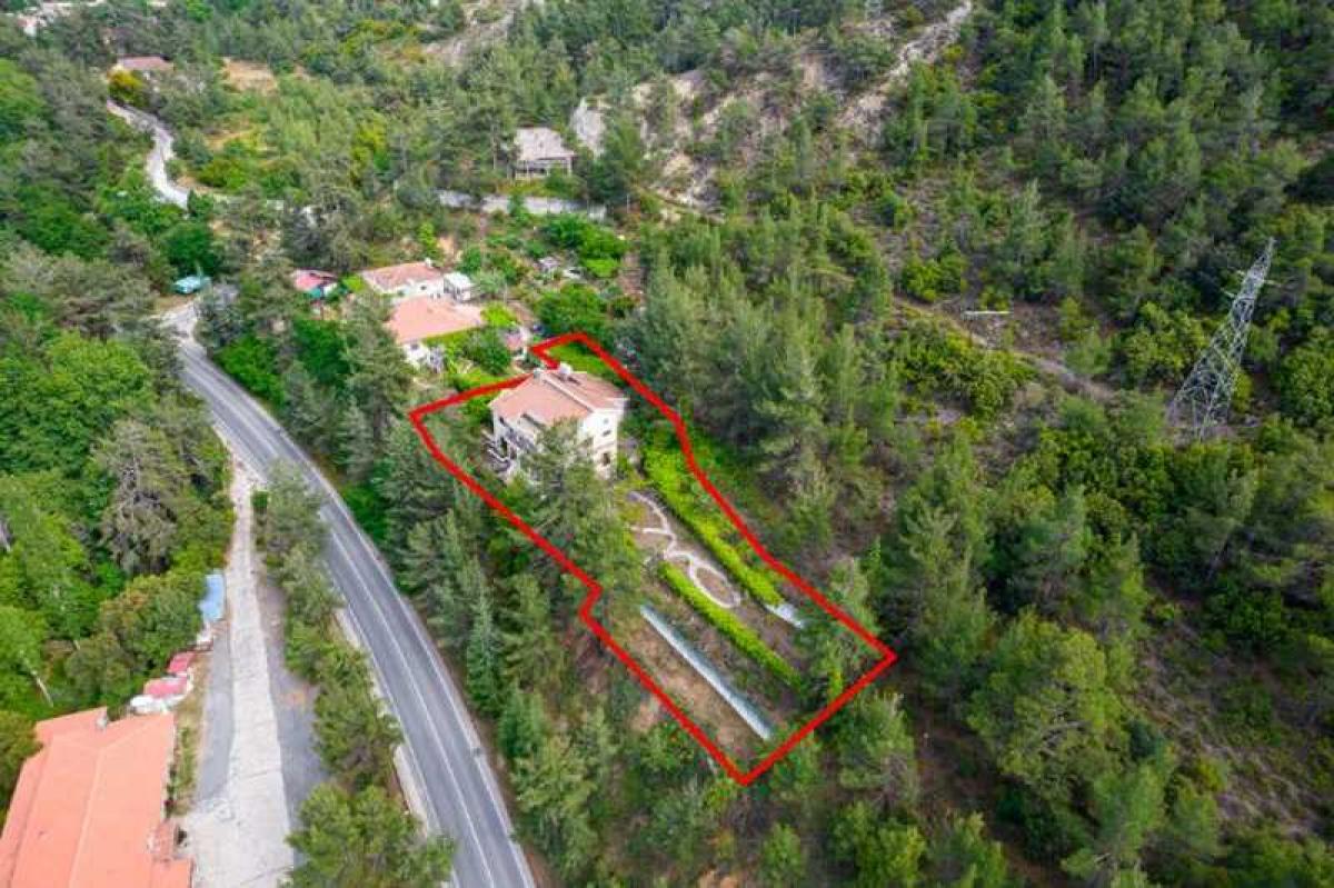 The properties are a residential plot and a two-storey house in Kakopetria. The properties are adjacent, and they are located 15m from the main road that connects Limassol and Kakopetria.The house has a covered area of 370sqm, 50sqm of covered verandas and 120sqm of basement. It is built in a plot of 795sqm. The house consists of three bedrooms on the lower floor and four bedrooms on the upper floor.