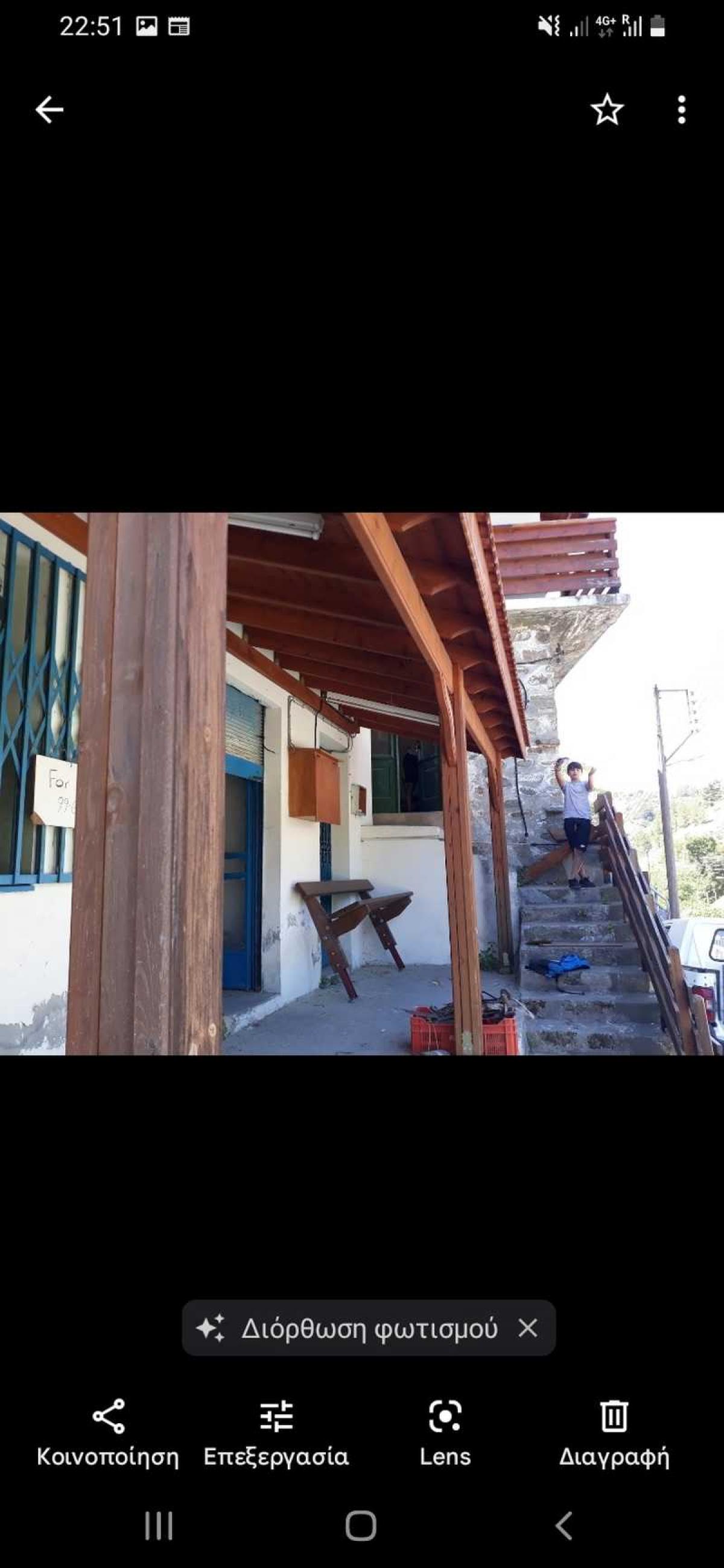 Its 3 rooms as show to the fotos 2 rooms in downstairs a big one and a smaller room wich is bathroom and upstairs another room which can use like bedroom.Its located in thd center of the village can use it like home or shop.