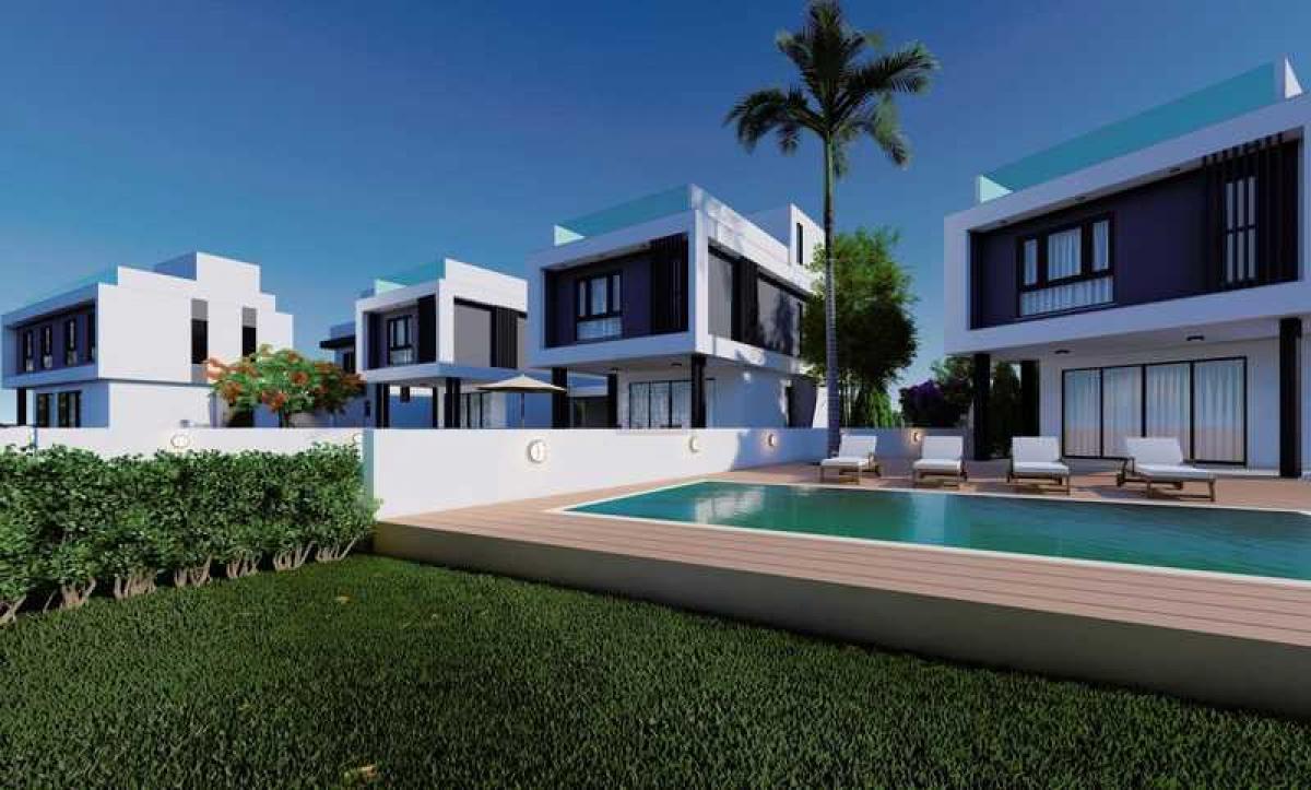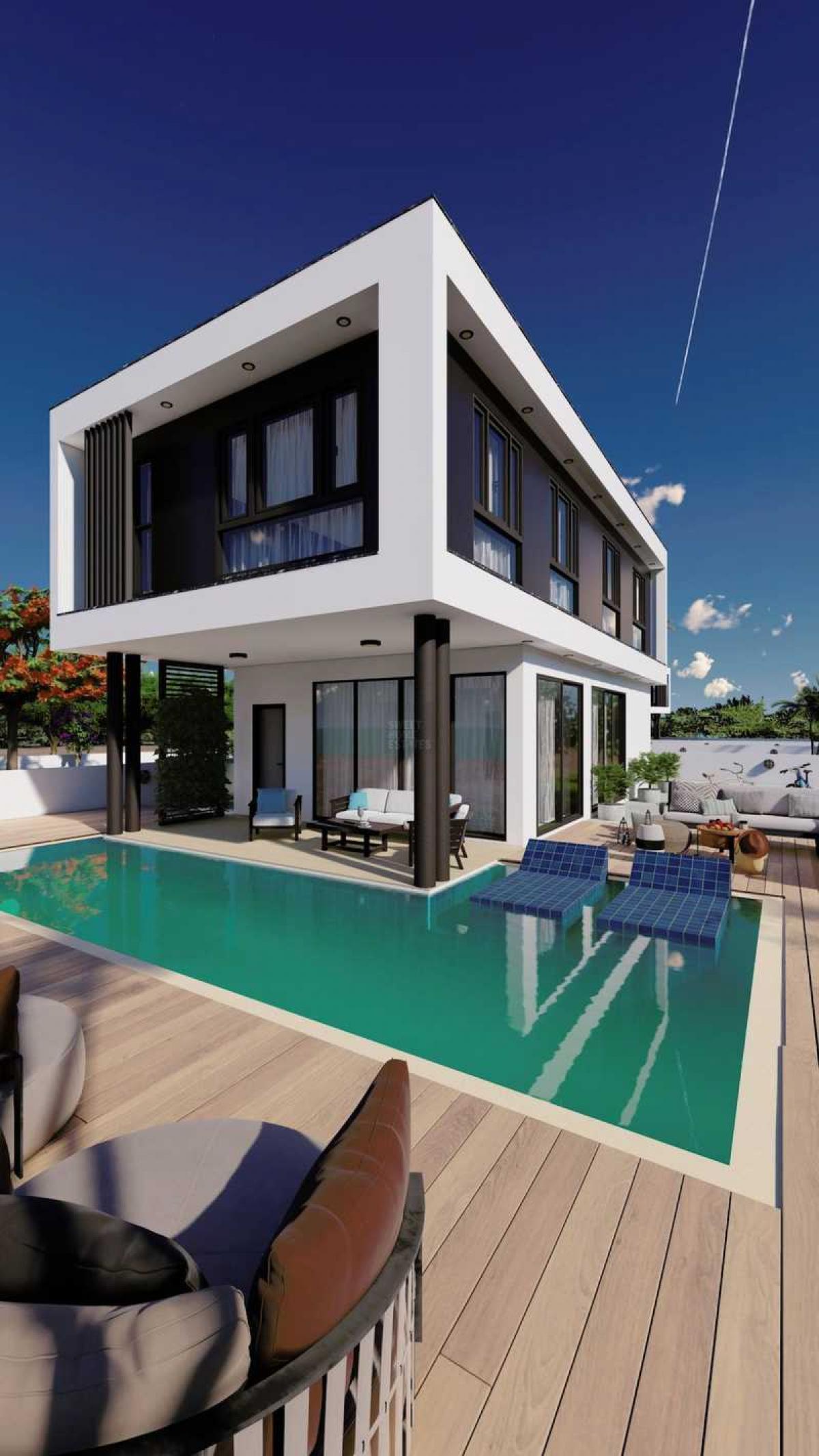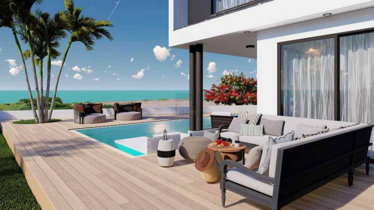 Modern four bedroom villa with private pool, located in the popular area of Kapparis, a few feet away from the beach and close walking distance to all nearby amenities. The ground floor consists of an open-plan living room, kitchen and dining area. The master bedroom features an en suite bathroom and the other three bedrooms shared a good sized family bathroom.Villa benefits from its good size of plot with private swimming pool ideal for welcoming your friends and family. Good size roof terrace with sea views and green area attached to the garden, makes this home great for permanent residence as well as for holidays with great rental potential.