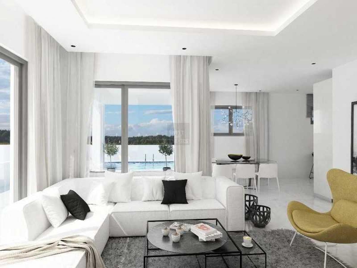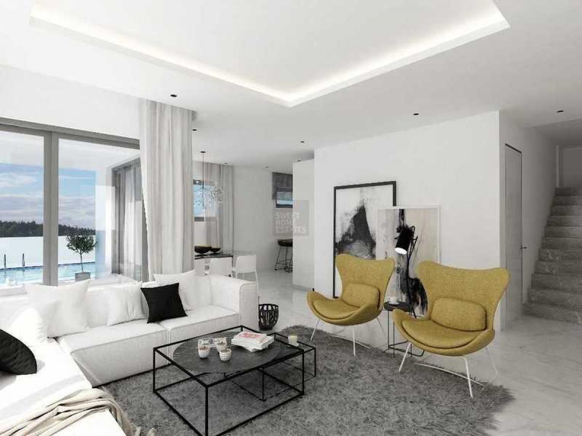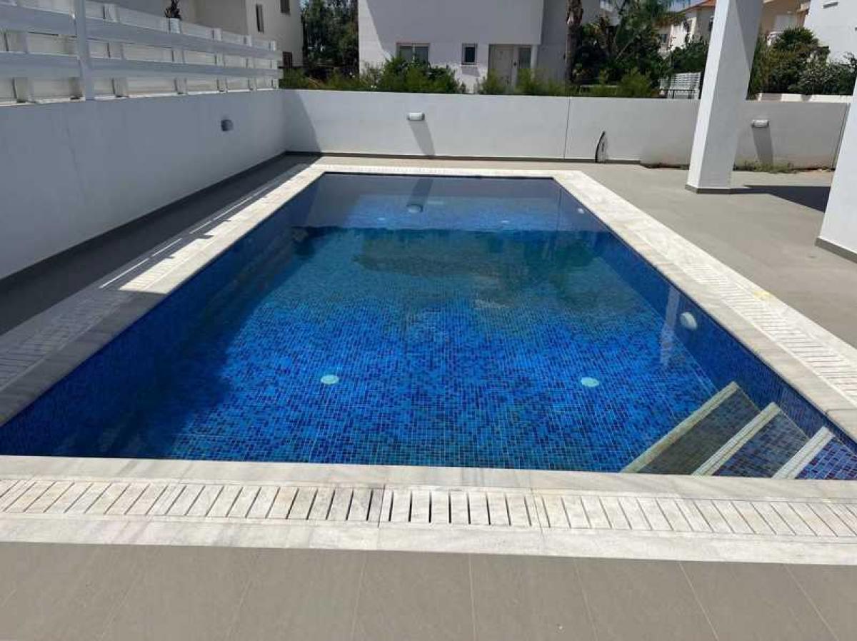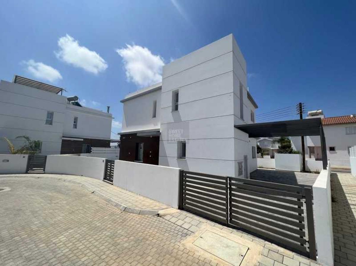 Brand new, modern design villa located in a prime location in Kapparis area within few feet away from the beach and all near by amenities.This beautiful presented house with plenty of natural light through out boast an open plan kitchen, dining/living area that leads directly onto the outside andground floor en-suite bedroomcomposes the ground floor. First floor, three spacious bedrooms with built in wardrobes whilst the master bedroom enjoys an en-suite the other two bedrooms sharing one good size of family bathroom. Outside, with the easy maintain landscaped garden and covered terraces for alfresco dining next to the swimming pool. A perfect place for holidays with great rental potential. KEY READY HOUSE/RENTAL POTENTIAL