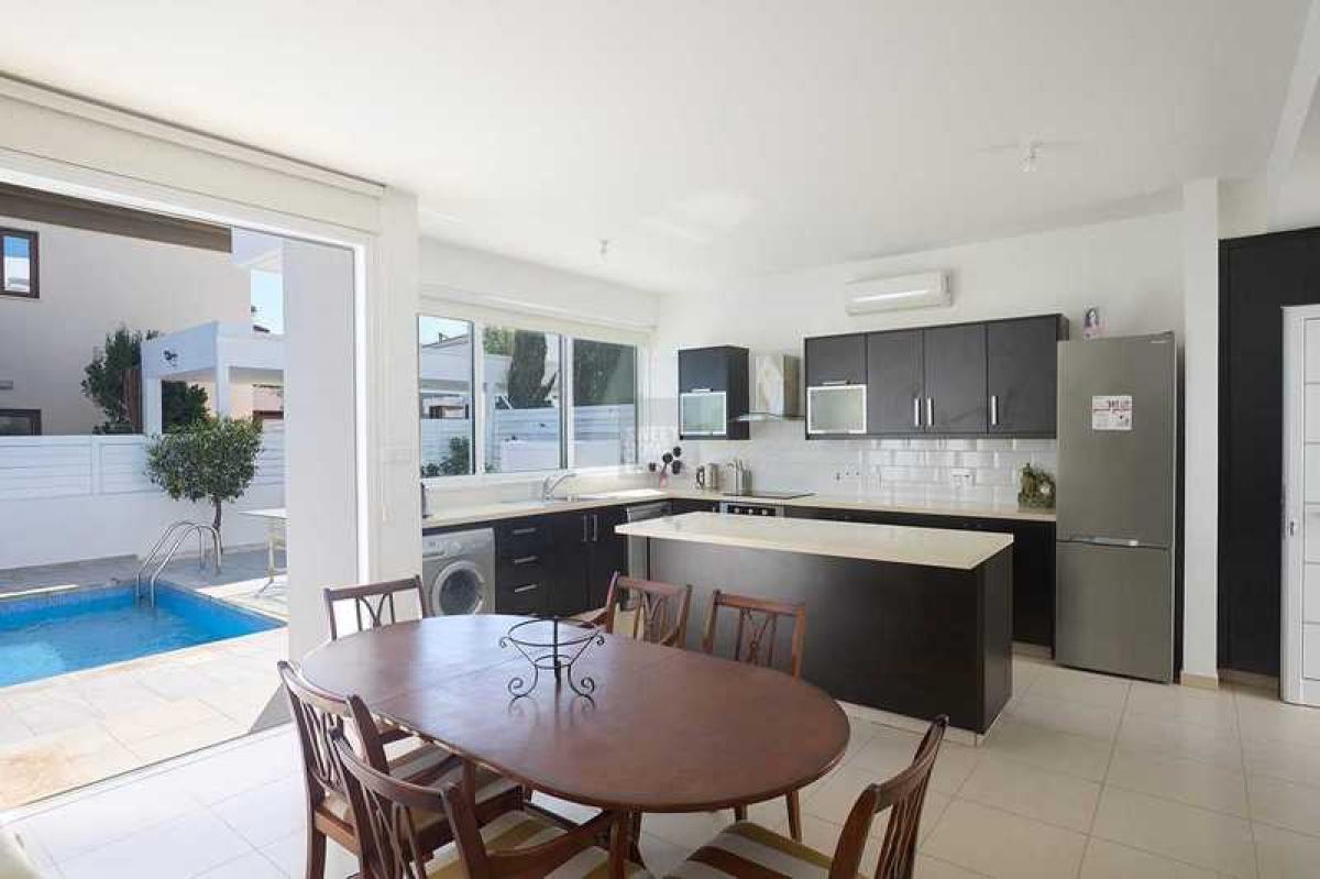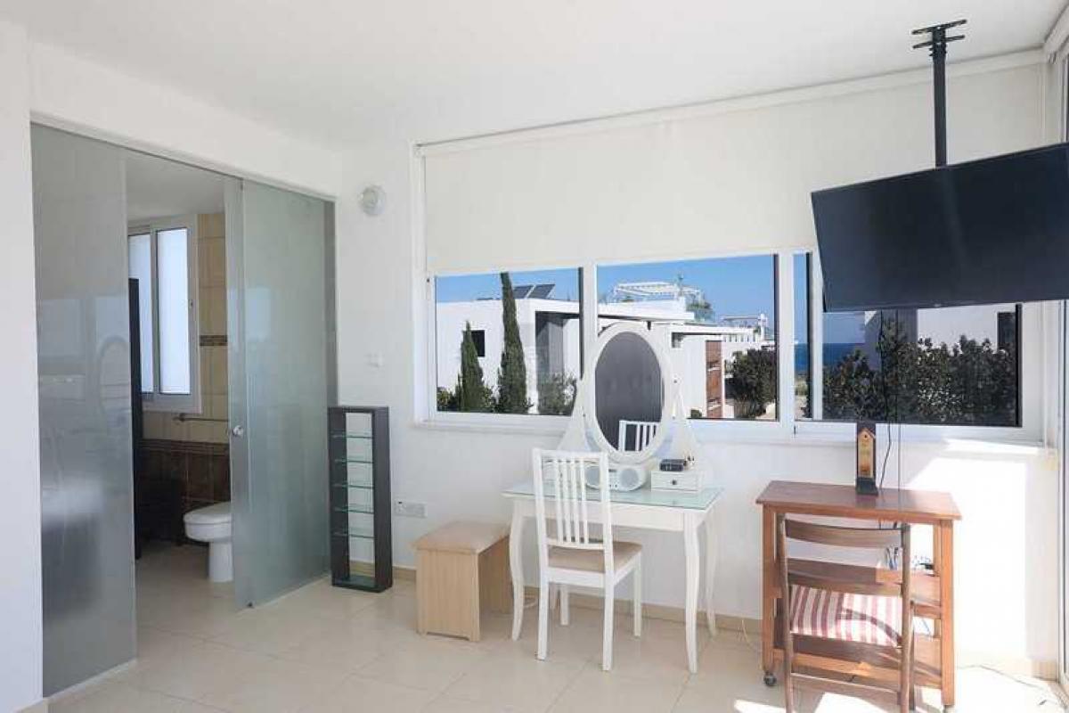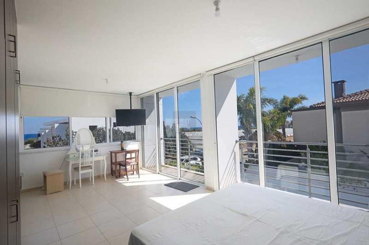 A contemporary 3-bedroom villa, ideally situated just steps away from a sandy beach and all the conveniences of the Kapparis resort.This stunningly designed villa features an open-plan kitchen, living, and dining area that seamlessly connects to the outdoor terrace. Upstairs, the owner has converted two of the bedrooms into a large master with an ensuite bathroom. This modification can be easily reverted to the original plans if required. The master bedroom boasts a spacious Jacuzzi and panoramic sea views. The second bedroom also features an ensuite bathroom.