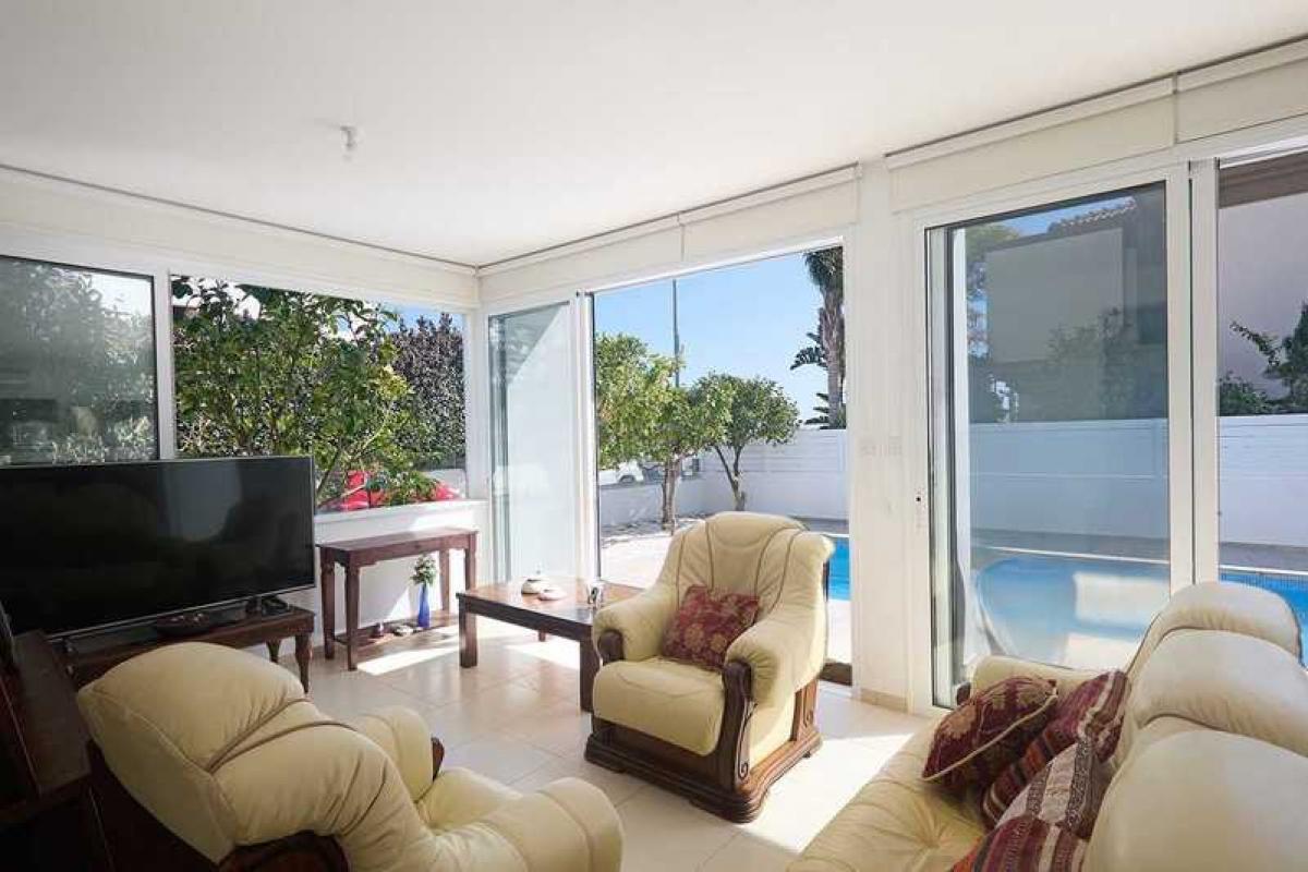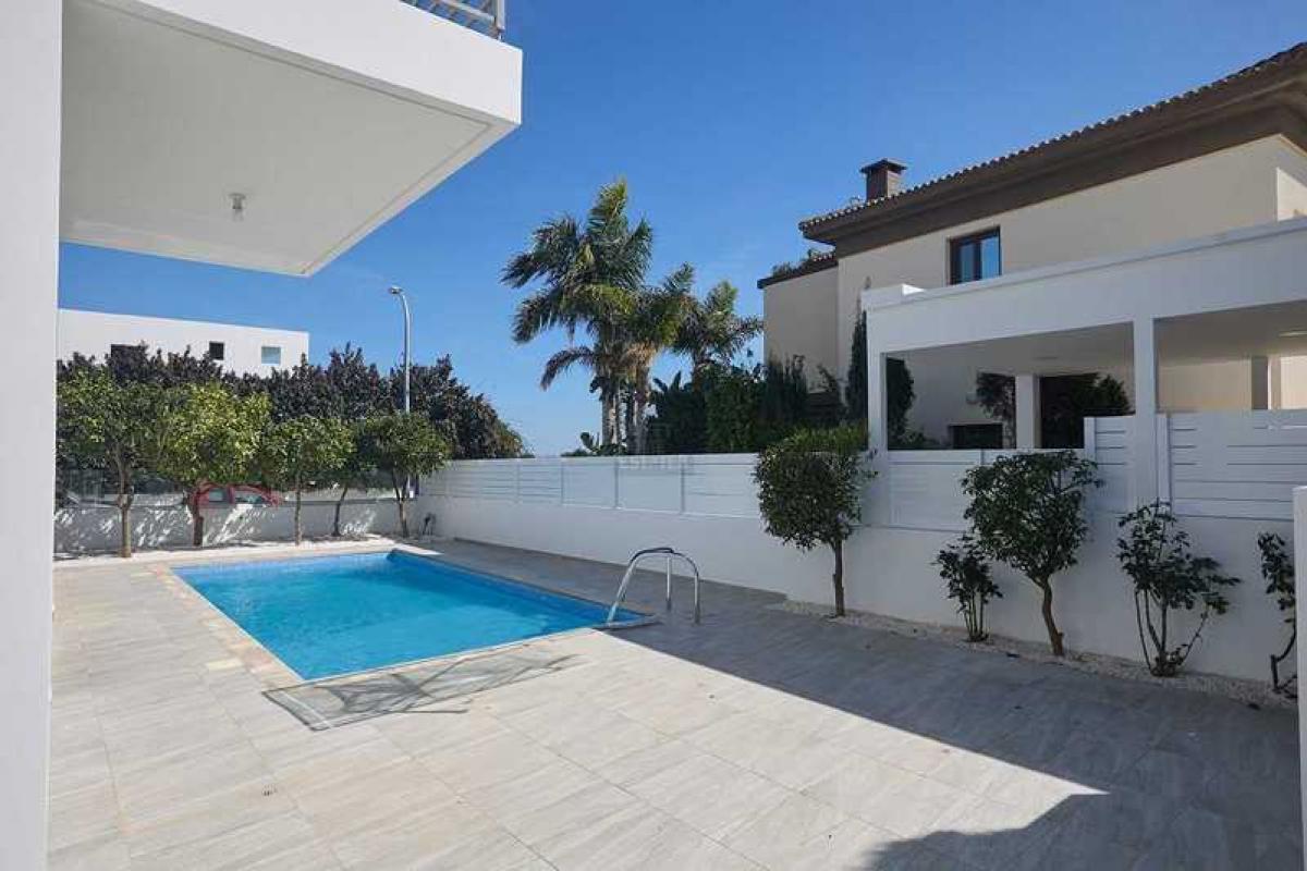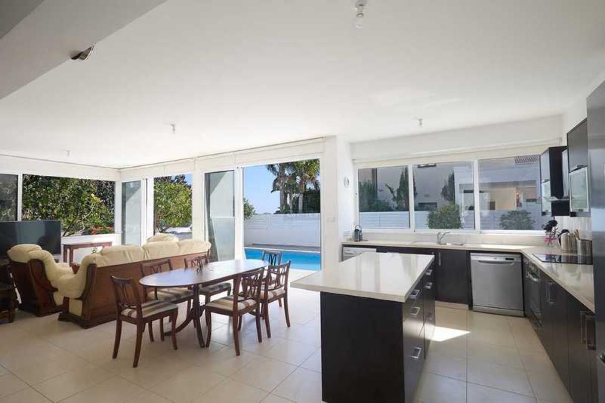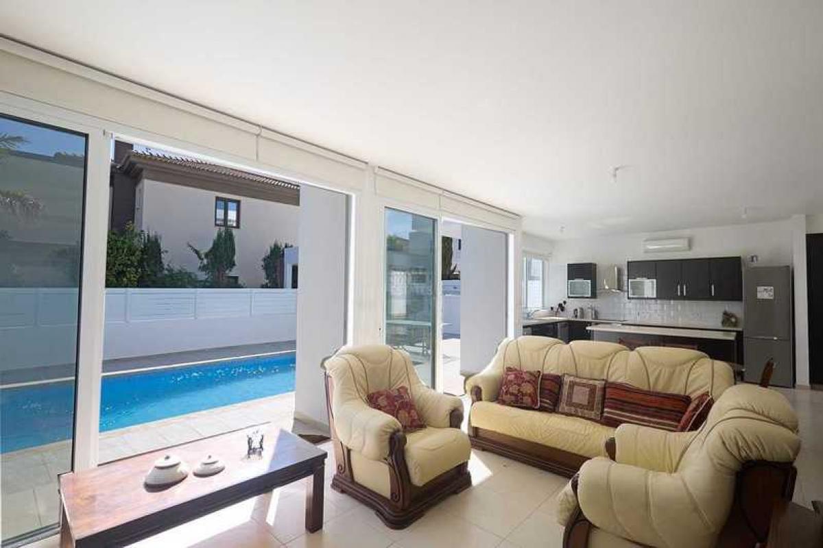 A contemporary 3-bedroom villa, ideally situated just steps away from a sandy beach and all the conveniences of the Kapparis resort.This stunningly designed villa features an open-plan kitchen, living, and dining area that seamlessly connects to the outdoor terrace. Upstairs, the owner has converted two of the bedrooms into a large master with an ensuite bathroom. This modification can be easily reverted to the original plans if required. The master bedroom boasts a spacious Jacuzzi and panoramic sea views. The second bedroom also features an ensuite bathroom.