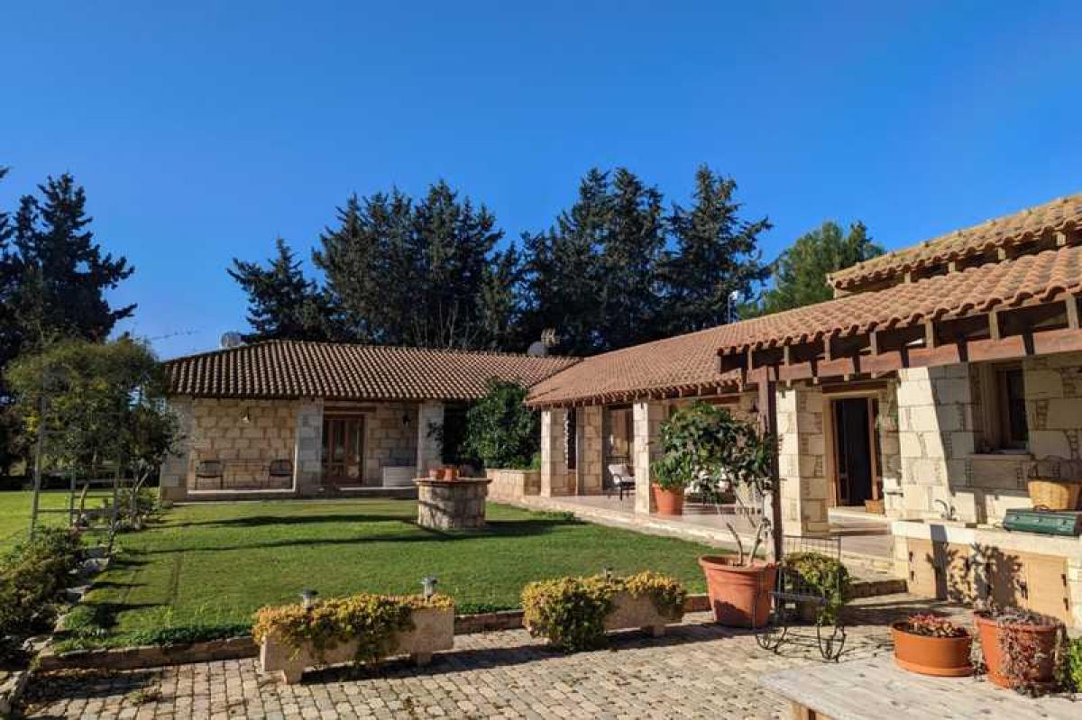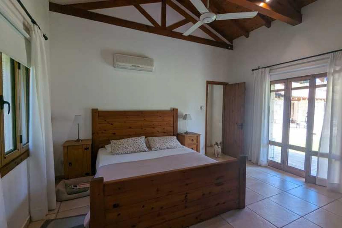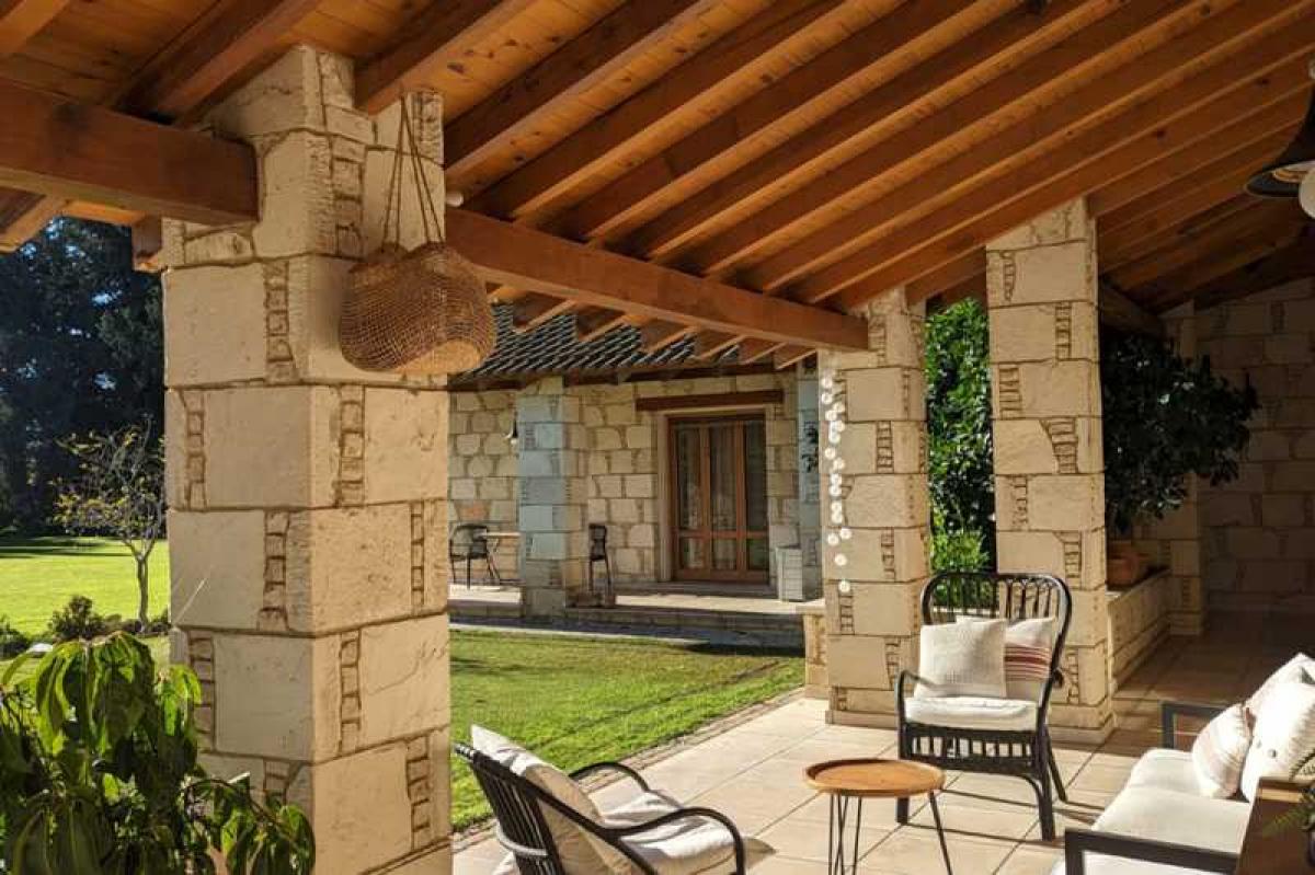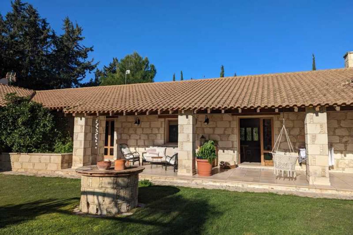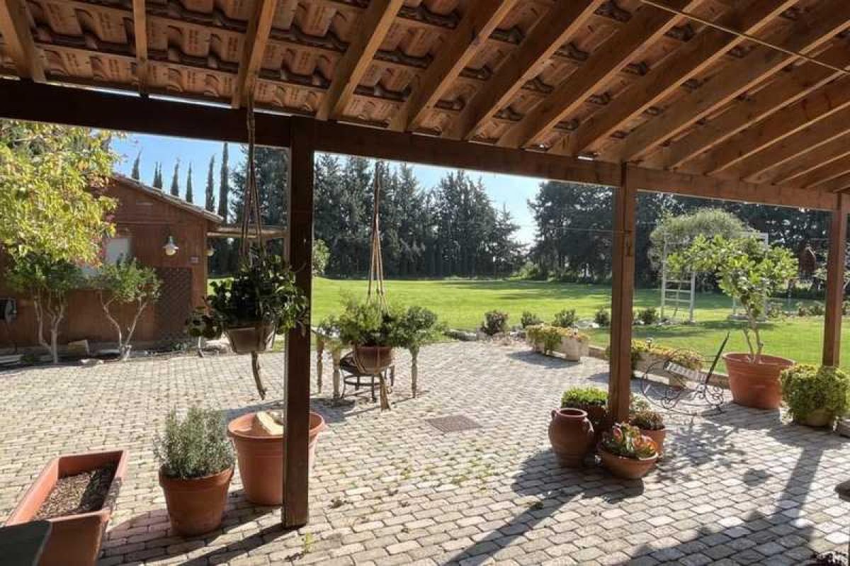 Experience tranquil living in this stunning four-bedroom bungalow situated on 13,780 m2 of agricultural land in Kiti, Larnaca. This beautifully designed 220 m2 home features an open-plan layout, including a spacious living area with a cozy fireplace and a stylish kitchen with marble countertops.The bungalow boasts four comfortable bedrooms, with the master suite offering an en-suite bathroom, alongside an additional bathroom for guests. Enjoy the serene surroundings from the covered verandas, while the large covered parking and separate utility house provide added convenience and versatility.