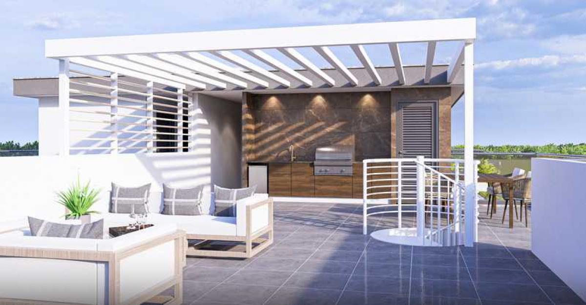 Breathtaking 2+2 Bedrooms Penthouse in Kiti area Larnaca. The property is located in the village of Kiti which is only 8km and 10 minutes from Larnaca International Airport, and a 11km and 15 minutes from Larnaca town center. The village provides for a full range of amenities. As such, Kiti is equipped with all business, shopping and entertainment facilities, and has received many awards for its perfect sanitation.The internal area of the property is 84 sq.m. The apartment consists of an open plan kitchen, living and dining area two bedrooms one of which has an en suite, one family bathroom, covered veranda of 15 sq. m., an amazing roof garden of 72 sq. m. that consists of two rooms and a shower, one storage room and one covered parking.