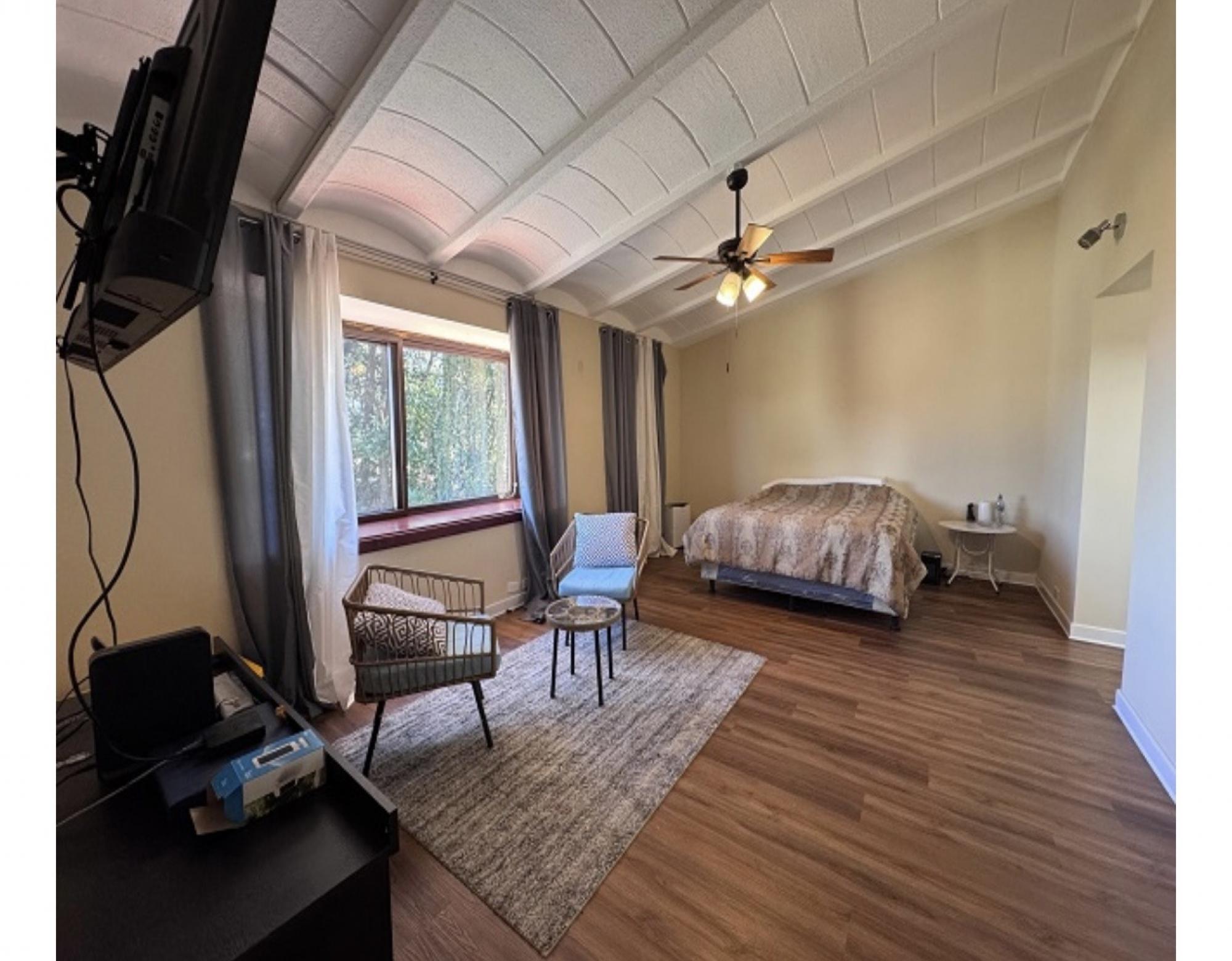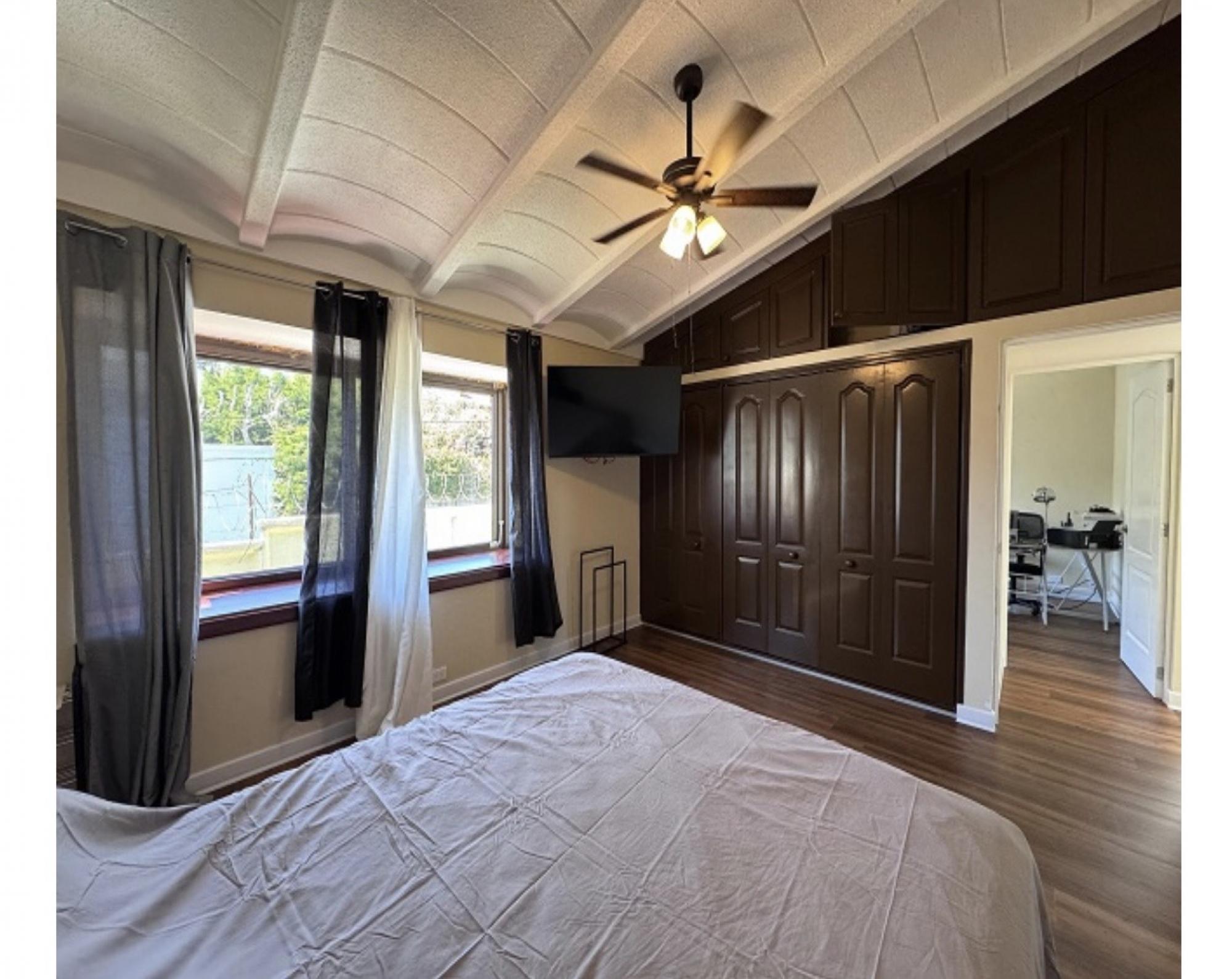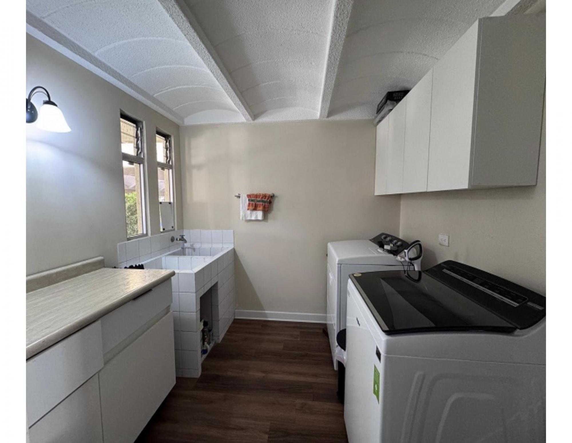 4 Bedrooms ,2full bathrooms 2/1, main living room, +family room , kitchen with quartz countertops Dinning room with garden access, Landry room &service quarters, covered patio Covered parking 2 .large master room , hot and cold water in the entire house.