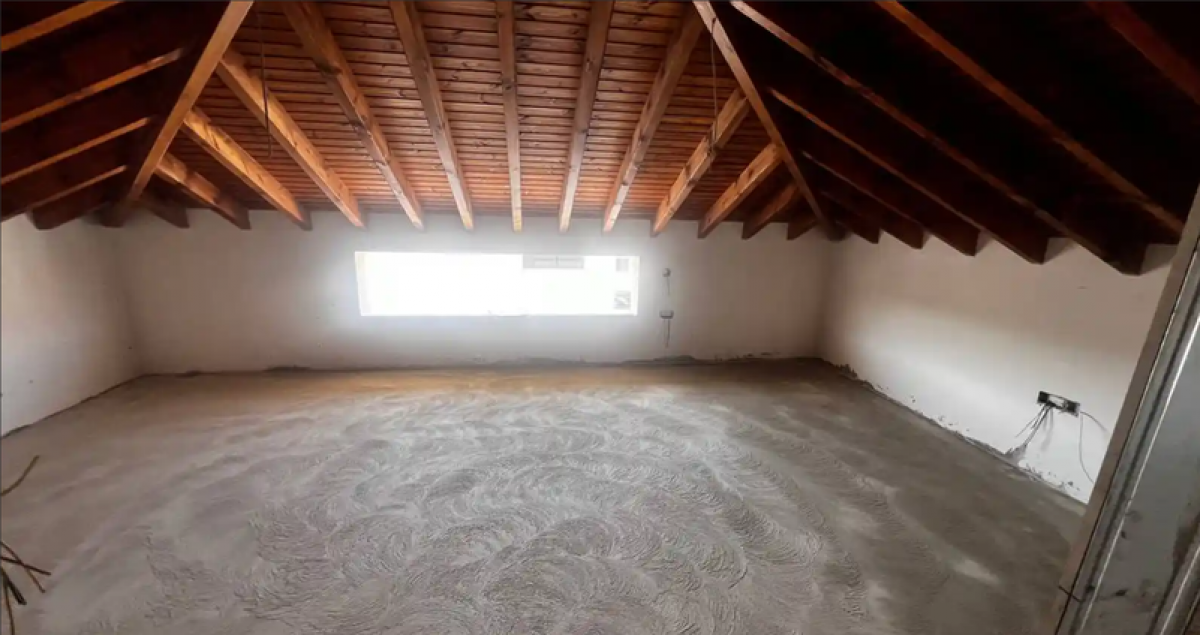 Second Floor: A bathroom and two expansive rooms suitable for various uses such as an office, playroom, or additional bedrooms.