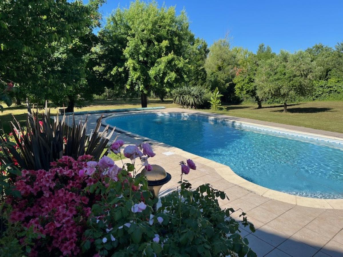 ideal location close to two small towns and just 10 minutes from Bergerac town centre. House of approximately 177m2 surrounded by the 3750m2 enclosed garden with a 10m x 5m swimming pool. Filled with natural light, the living room of 45m2 looks out on to garden and pool area, a separate kitchen, a verandah with summer kitchen, two bedrooms and a shower-room on the ground floor. Upstairs are two large bedrooms of 29m2 and 13,5m2 and a bathroom. A separate double garage with a cellar completes the property which is secured by electric gates.