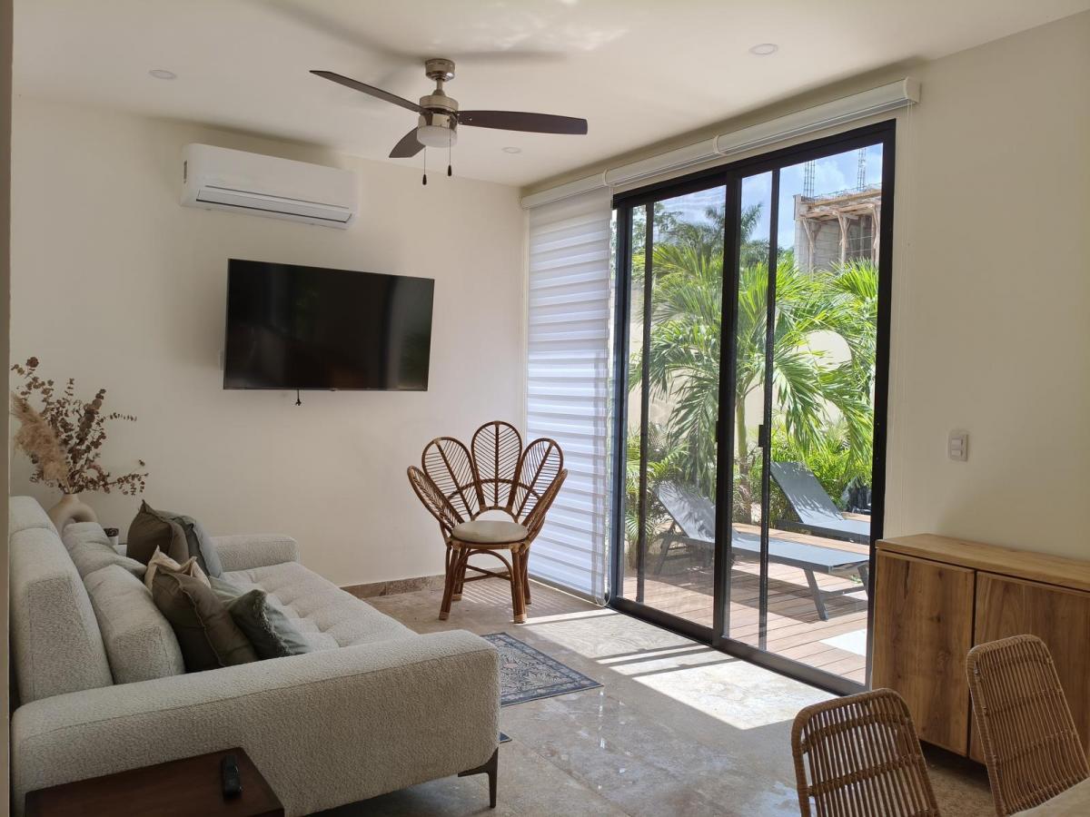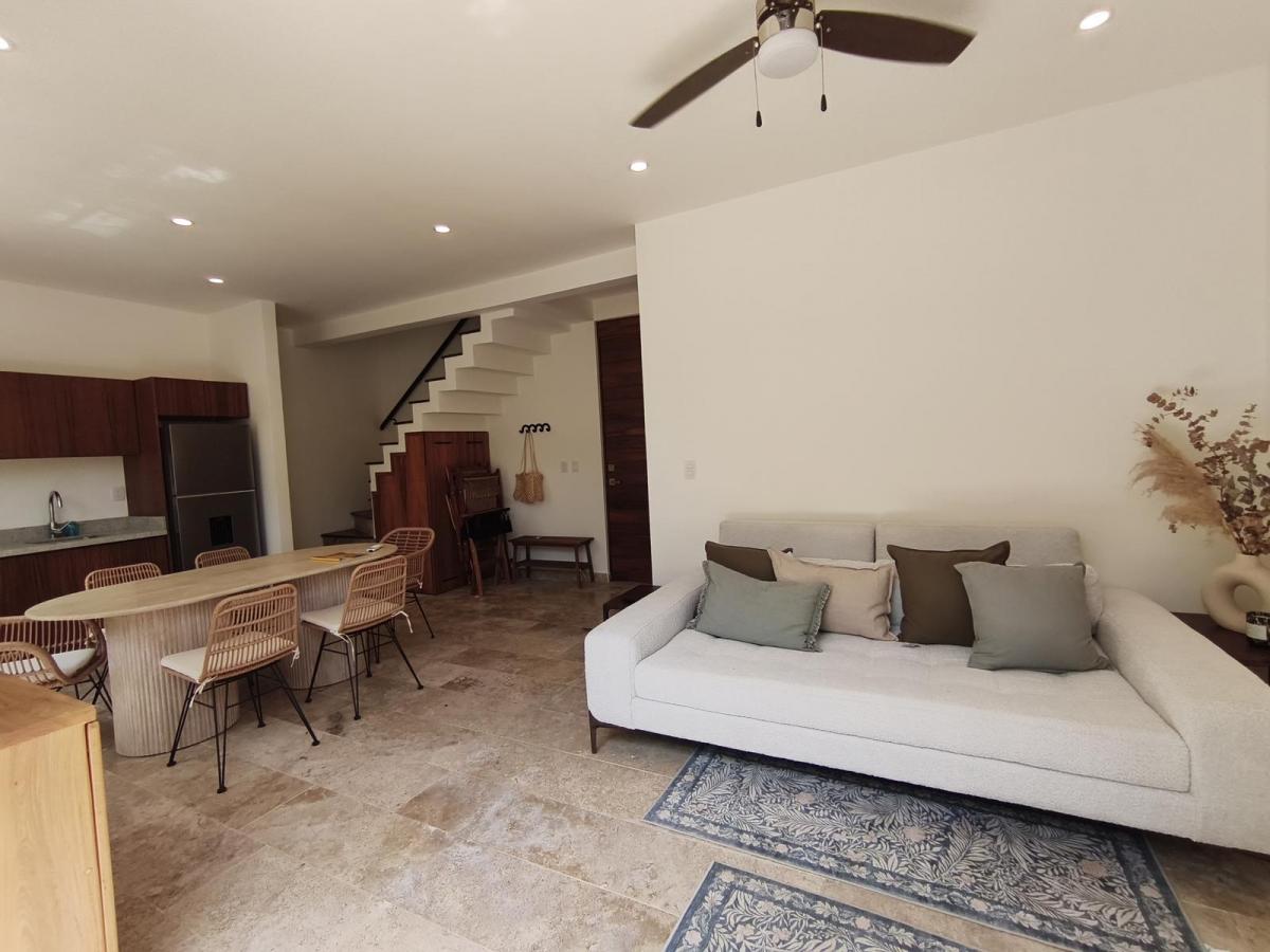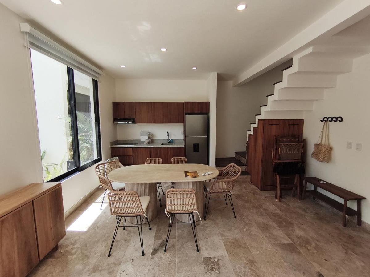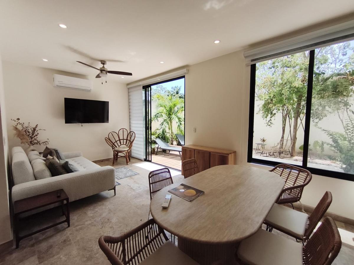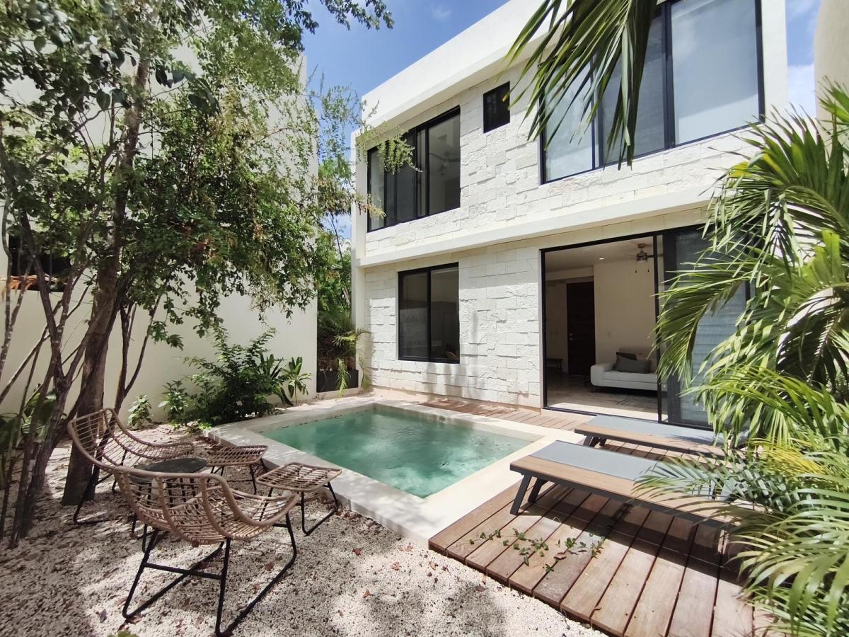 Experience a private oasis of elegance in the heart of Tulum, where architecture blends seamlessly with nature to create a unique living experience. This exclusive development features six private homes, each designed to harmonize with the surroundings while preserving over 60% green areas. Each residence offers spacious 77 m2 interiors, two bedrooms, two bathrooms, and a dedicated laundry area.The homes are finished with luxury materials, including travertine marble, black San Gabriel granite, regional wood, and galarza stone facades. Each property includes a private 50.74 m2 garden with a deck and chukum pool, perfect for enjoying the tropical climate in complete privacy. The 38.5 m2 rooftop provides an additional space to create your own sanctuary under the stars.