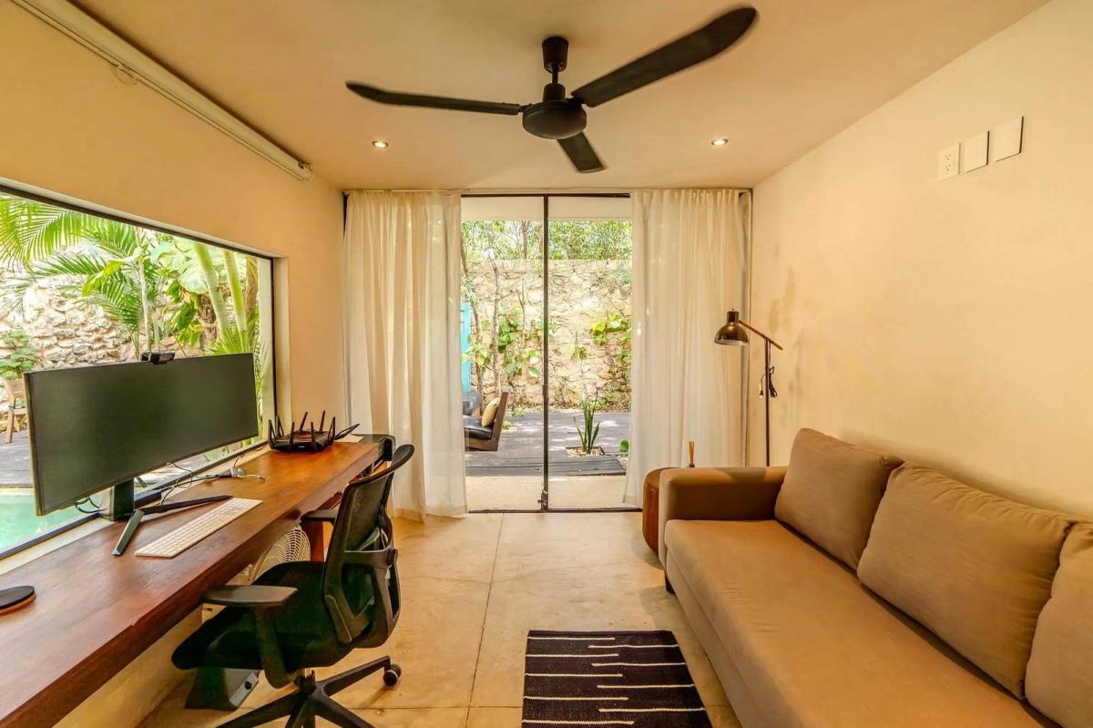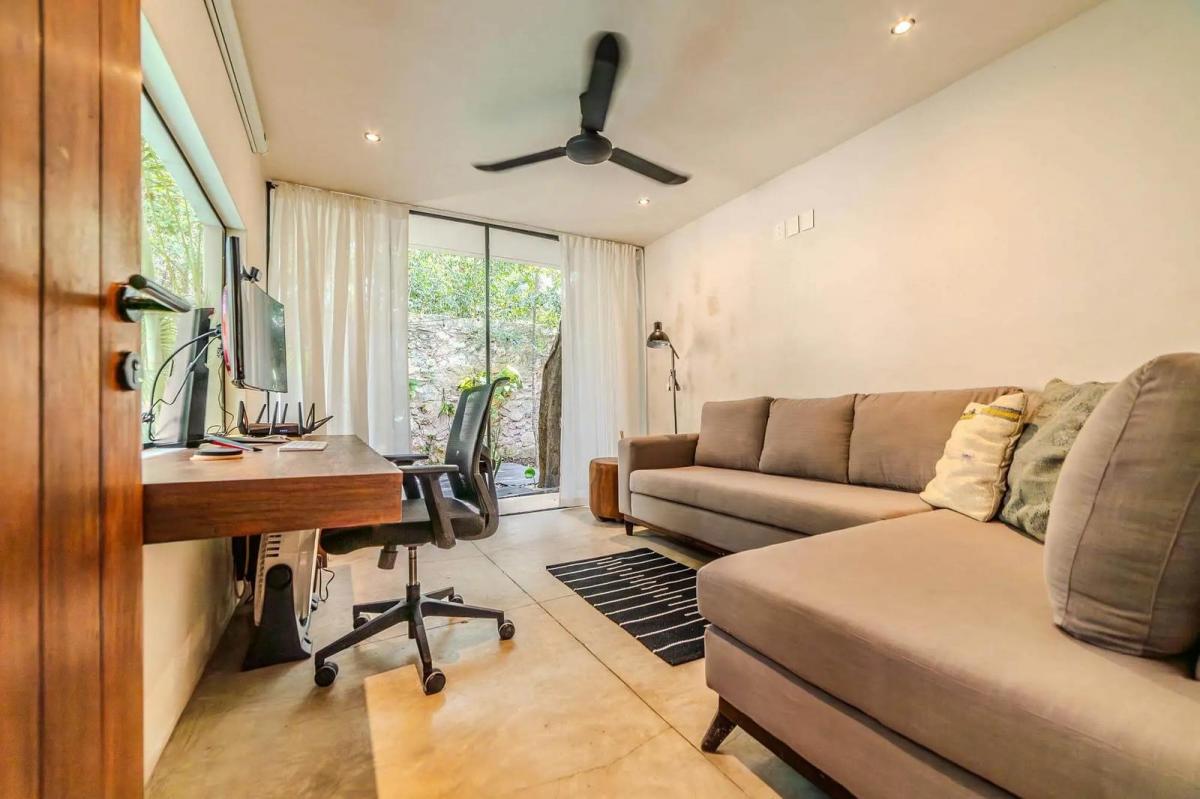 Villa Kaan offers a rare combination of modern design, comfort, and a deep connection to nature—perfect for discerning buyers seeking a serene yet stylish lifestyle in Tulum. Located just a few steps from Holistika, this turnkey home is ready to move in or generate rental income from day one.Spanning 301 m2 of construction on a 301 m2 lot, Villa Kaan includes three spacious bedrooms, a private office ideal for remote work, two full bathrooms, and a guest half bath. A lush garden surrounds the home, while a private pool invites you to relax and recharge. The modern open kitchen, featuring a breakfast bar and premium finishes, flows seamlessly into the social areas—making it ideal for entertaining or quiet evenings at home. This property comes fully furnished and move-in ready, allowing for immediate enjoyment or profitable use as a vacation or long-term rental.