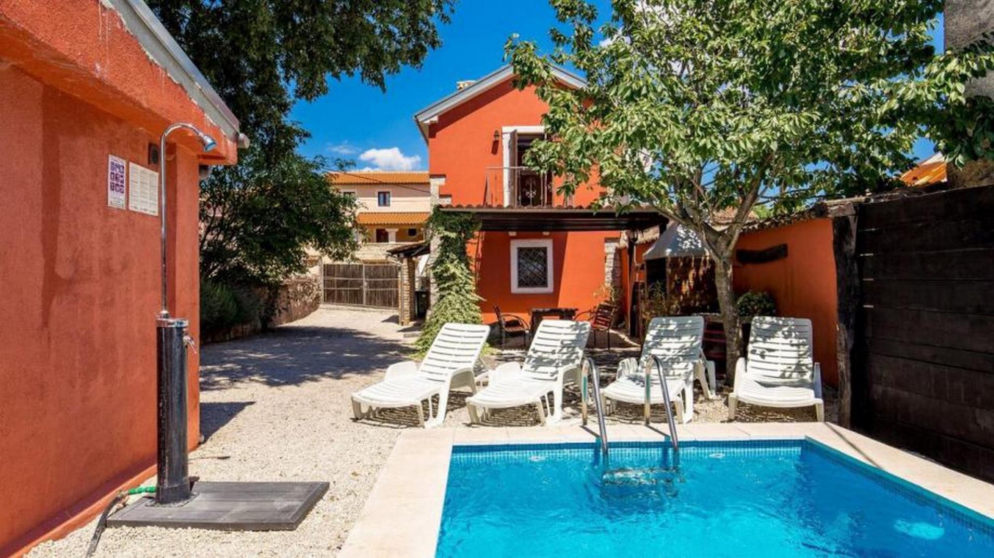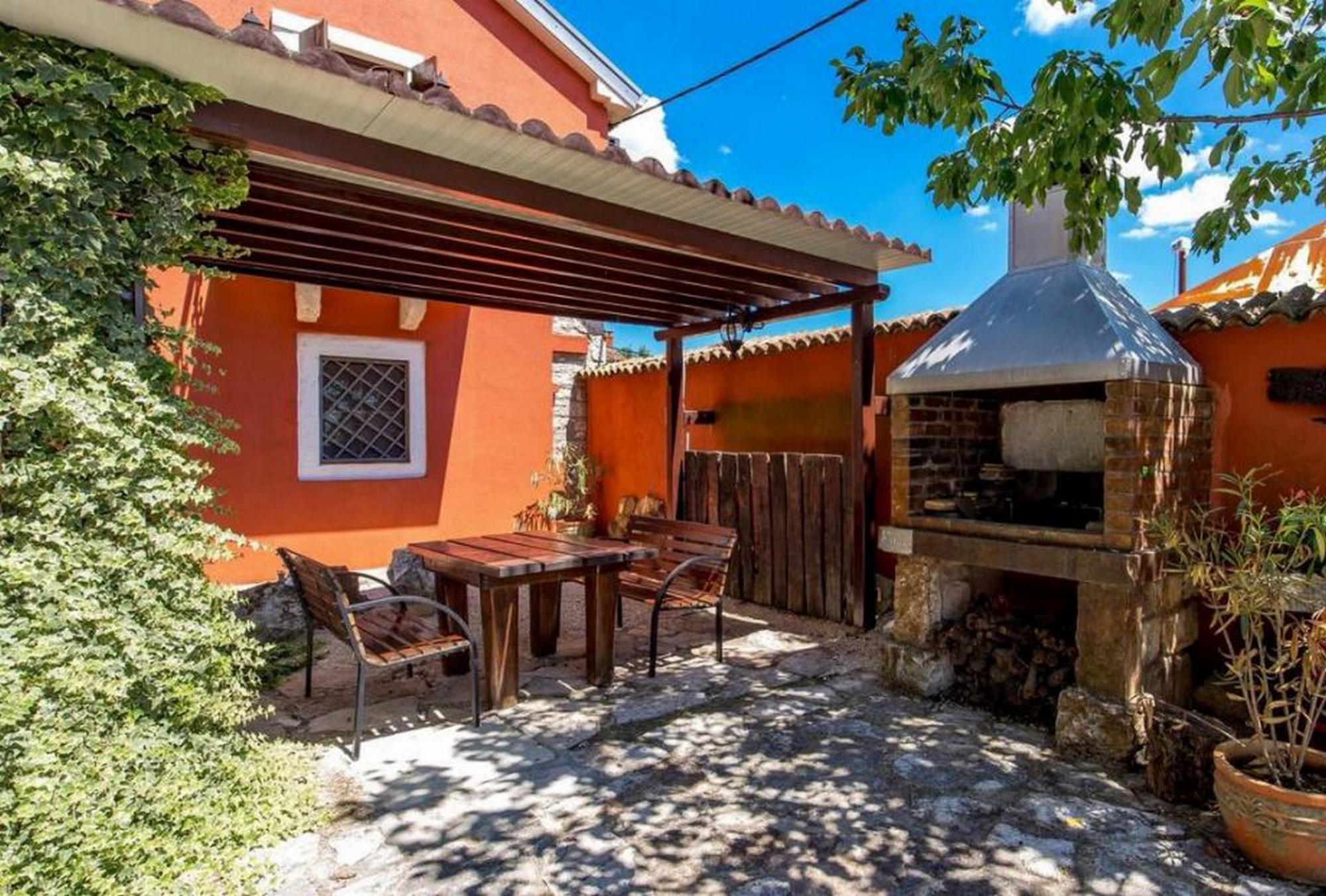 The municipality of Barban is located near the eastern coast of Istria, southwest of the river Raša and northwest of the Bay of Raša. In a quiet village near Barban, there is a renovated rustic Istrian stone house of 120 m2. It consists of ground and first floor. The ground floor has a kitchen with dining area, living room with fireplace and bathroom. The house is furnished with high quality rustic furniture. Upstairs there are internal stairs, where two bedrooms and a bathroom are located. Each room in the house has a separate inverter air conditioner. The interiors that dominate the house are of natural material, namely Istrian stone and wood. On a plot of 643 m2, there is a covered terrace with barbecue, swimming pool and garage. Below the house is a meadow with an olive grove.