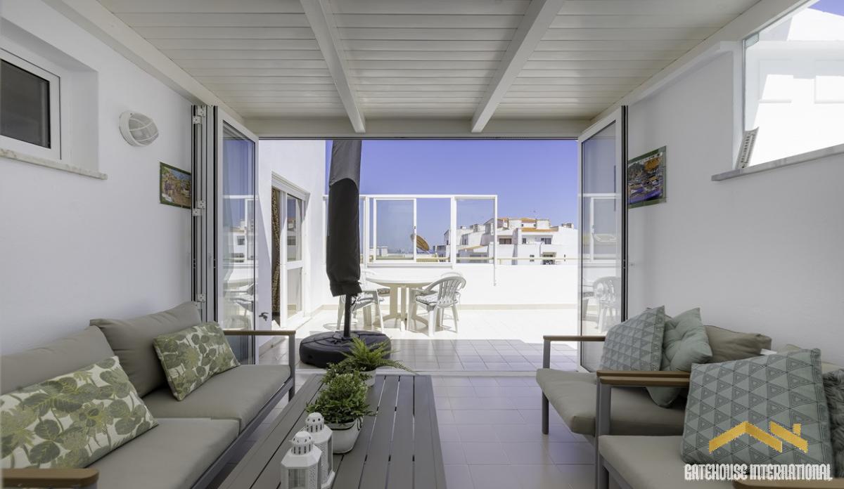 3 Bed Penthouse in Lagos Algarve With Sea Views - a top-floor modern 120 m2 apartment with sea views located in a building with an elevator close to the beach with 3 bedrooms and 2 bathrooms. The apartment consists of an entrance hall, a living room featuring a modern gas fireplace, dining space, fitted kitchen, 3 bedrooms and 2 bathrooms. Outside is a balcony and a roof terrace with an Al fresco dining space. in brief: - entrance hall - living and dining space - fitted kitchen - 3 bedrooms - 2 bathrooms - balcony - terrace Lagos is one of the most sought-after cities in the Algarve, not only for its golden sandy beaches and crystalline waters but also for the scenic beauty of its bay and its architectural legacy. Start your walk on Avenida dos Descobrimentos, the beautiful waterfront along the mouth of the Ribeira de Bensafrim, which will take you to some of the points of interest in Lagos that are well worth a visit. There is also the Marina where you can take a ferry/boat and see Ponta da Piedade, which is one of the most beautiful coastal landscapes in the Algarve. A set of wonderful cliffs, caves and arches, rocks that seem to have been carved by hand and small coves and beaches, bordered by a sea of turquoise and emerald tones. Lagos is close to all amenities, public transport, shops, schools, etc. and is situated within a 1-hour drive from Faro international Airport.