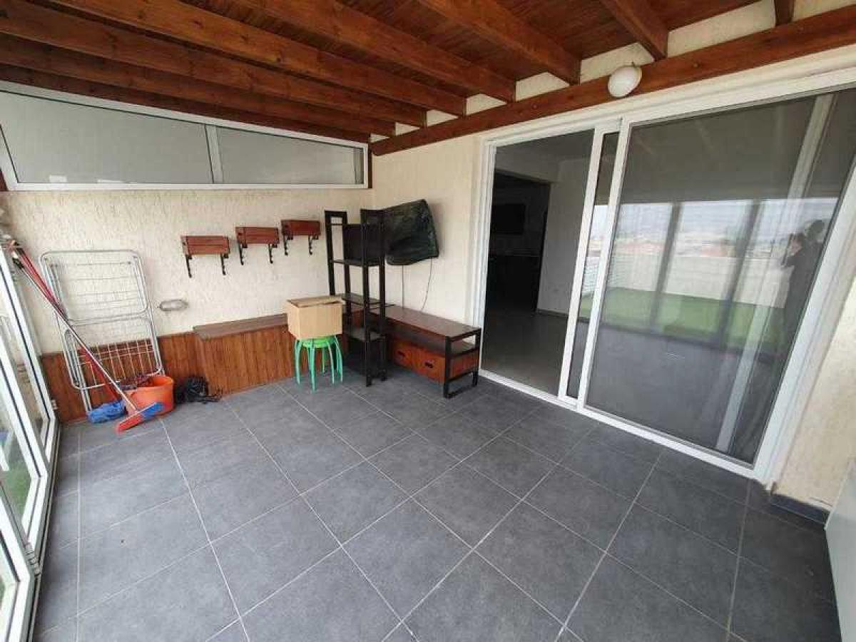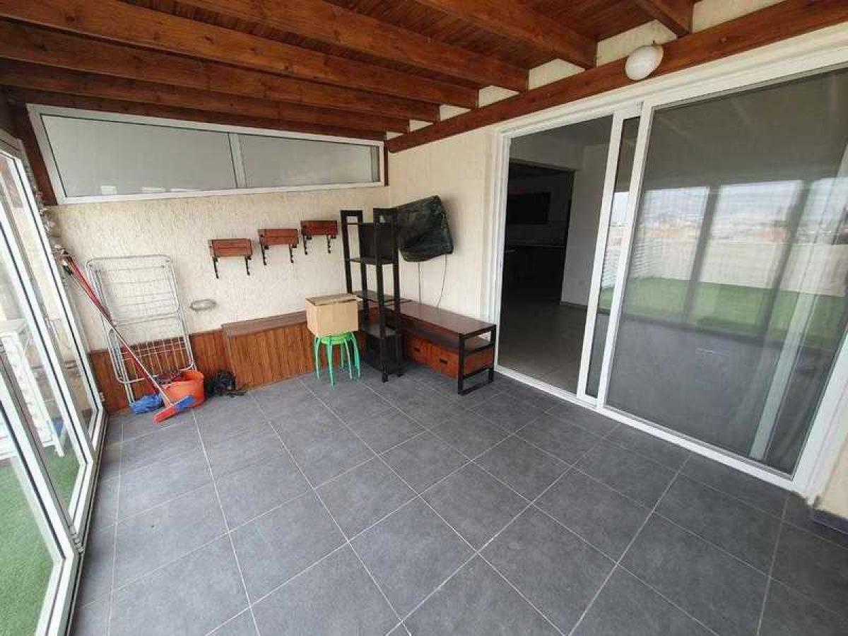Penthouse apartment for sale in a quiet area in Lakatamia, Nicosia. The apartment consists of a spacious, open-plan living room-dining room and kitchen, 3 bedrooms of which the main one is en suite, a shared bathroom and 37 sq.m. verandas (the 15 sq.m. covered with a pergola and with "bellows" type aluminum doors). The uncovered part of the veranda has synthetic grass. All high quality appliances are included in the kitchen. There are also air conditioners and electric units in all rooms as well as the provision of electric heating accumulators. It has 2 parking spaces (one covered) and 2 warehouses. Title deed available.