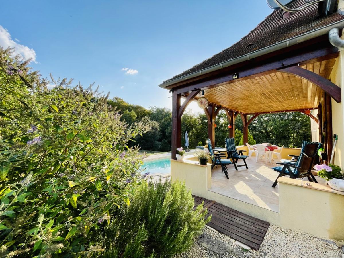 This house was designed exceptionally well by an architect(2010), it comprises 4 large bedrooms, 1 separate WC, 3 bathrooms, each with their own toilets. 1 has a bathtub. This bright, spacious family home breathes harmony. Made with high quality materials, with stunning exposed oak beams and solid wood parquet flooring, underfloor heating with heat pump. South facing view from the terrace onto the swimming pool with its lovely spring rockery and large garden.Calm, serene location, 8 minutes from Le Buisson de Cadouin with all amenities schools and also a train station.
