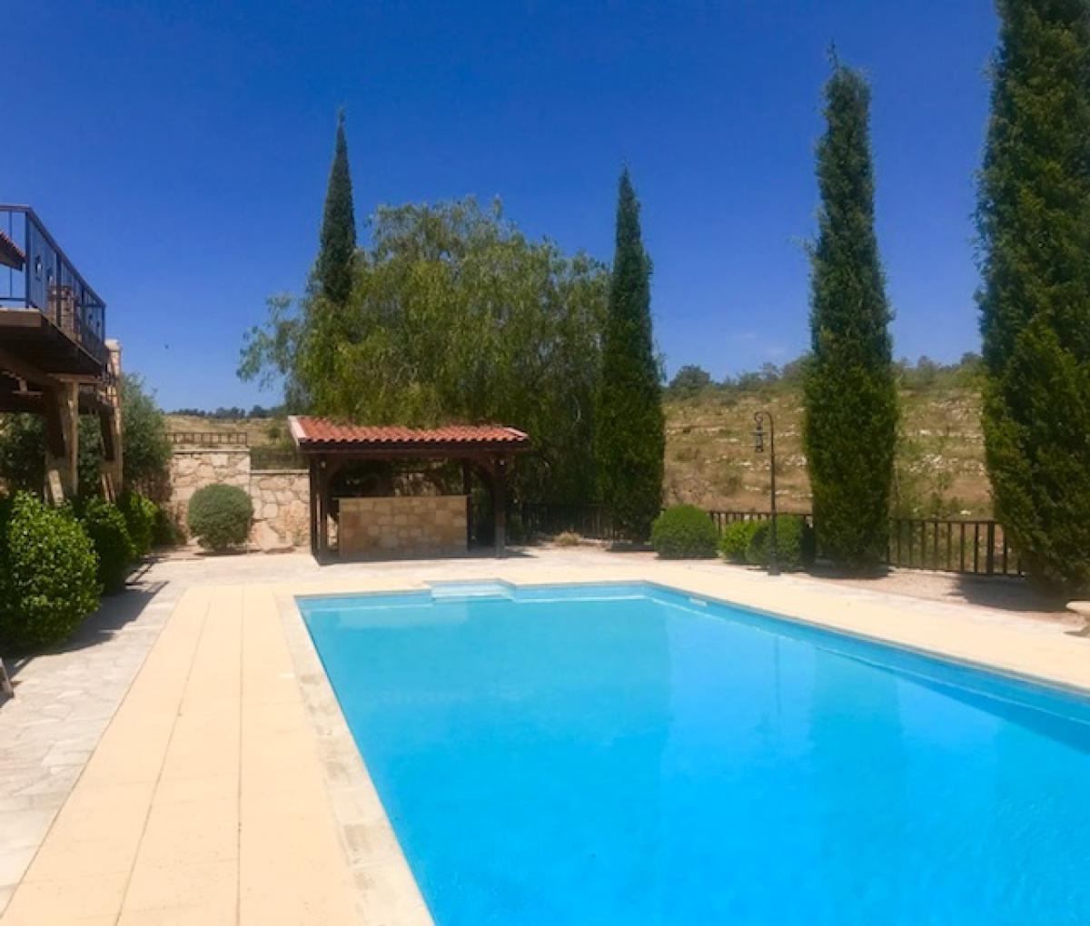 This beautiful stone-built, architect designed and award winning detached house is situated on the foothills of Troodos Mountains, in the much sought after Country Rose area of Souni village. It is close to all amenities, with Limassol and its splendid Marina, the neighbouring villages of Erimi, Episkopi, Kolossi and the famous beaches at Ladies Mile and Kourio less than 15 minutes' drive away. The famous PGA standard Golf Resort is only a 20 minutes' drive.The house is built on a large corner plot on slightly higher land, affording privacy, lovely views of the local countryside and Akrotiri Bay, fresh breezes and a feeling of peace, security and tranquillity. It is surrounded by extensive landscaped mature gardens with a large 12 x 5 m private pool, sun terrace with sitting areas and a built-in BBQ and bar.