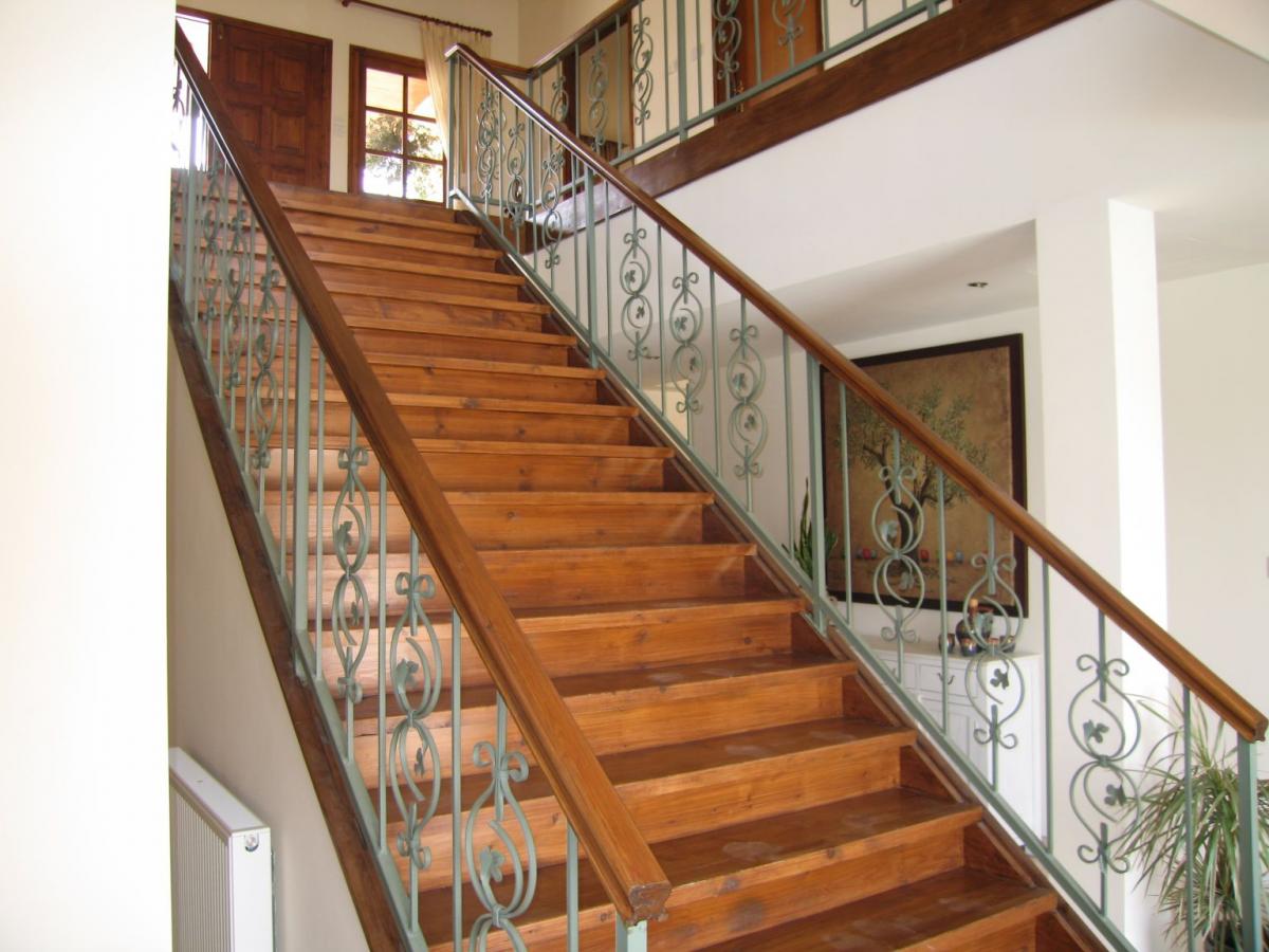 At the upper level, double doors lead from the front of the house into an impressive galleried entrance hall with a central wooden stair case leading to the ground floor. French windows open to the outside rear balcony which extends to the full width of the property. There are three bedrooms off the upper hallway, all with en-suite bathrooms and fitted wardrobes, and one with doors leading out to the balcony. The extremely spacious master suite consists of a large bedroom, a separate dressing area and an en-suite luxury bathroom. There is also a small gallery overlooking the bedroom which can be used either for a library or as a storage facility.