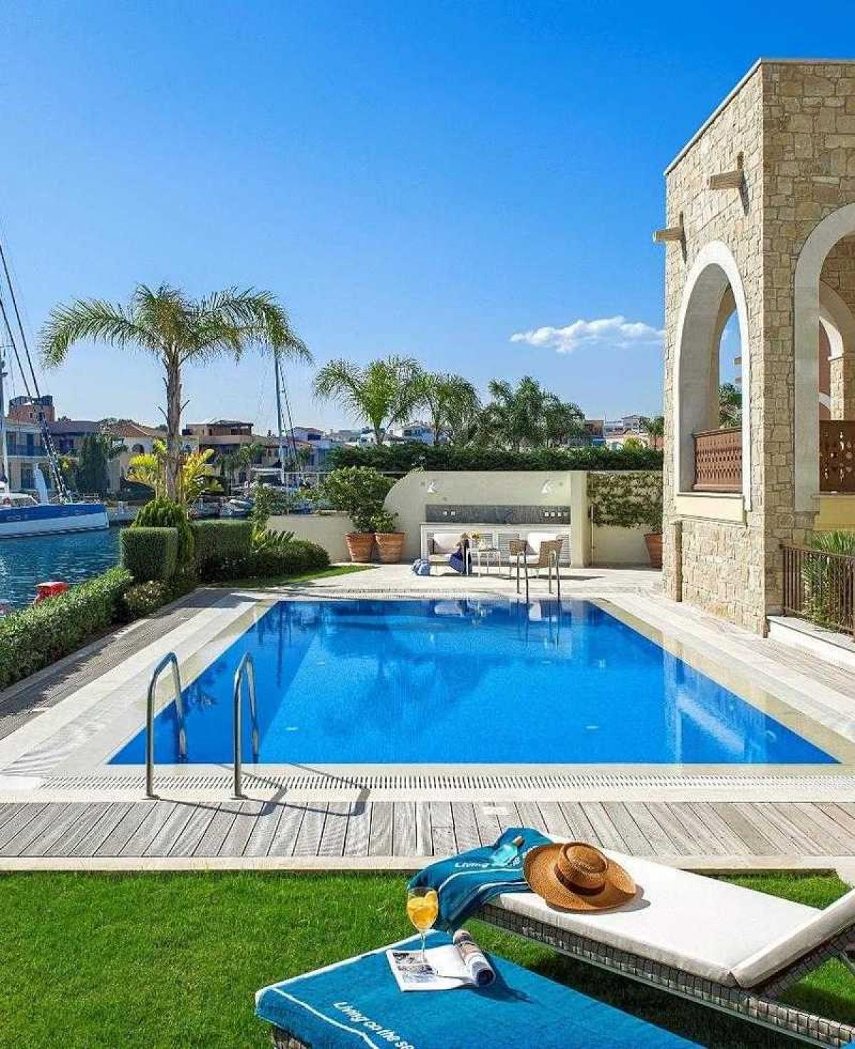 Reference ID: #SA24832Price details: €9,600,000 +VATFour bedroom villa with private berth, swimming pool and jacuzzi.The classical tone is set at the framed entrance to the villa and echoed throughout in details such as the finely turned balustrades and the exterior architectural moulding. Generous, light spaces across three floors are perfect for relaxed family life and lead out to the swimming pool, garden and the private berth. The large roof terrace offers unobstructed views in every direction.SPECIFICATIONSStructure- Reinforced concrete frame, in accordance with the regulations for anti-seismic design.Walls- Exterior walls are 250mm thick, insulated as per the requirements of the European Directive 2002/91/EC on the energy performance of buildings. - Internal walls are 100mm thick.Floors - Entrance halls, living, dining and kitchen areas are paved with marble. - Verandas, sundeck areas and basement are paved with ceramic tiles.- Bathrooms are laid with marble floors.- Bedrooms are fitted with floating parquet with 4mm solid wood top layer.- Parking areas are paved with stone.Wall finishes- External and internal surfaces have three coats of plaster and three coats of emulsion paint.- Parts of external surfaces are lined with stone.- Bathroom walls are lined with marble up to the height of the ceiling.- Bathroom walls in the basement are lined with ceramic tiles.Ceilings- Ceilings in kitchen, bathrooms and corridors are of plaster board treated with two coats of spatula and two coats of emulsion paint.- All other ceilings are of fair faced concrete treated with two coats of spatula and two coats of emulsion paint.Doors and windows- Entrance doors are of solid wood. - All internal doors are imported ready-made for installation.- External doors and windows are double-glazed with coloured aluminium sections.- Bedroom external doors and windows are fitted with aluminium shutters.Wardrobes and kitchen cupboards- Bedroom wardrobes and kitchen cupboards are imported, ready-made for installation.Sanitary ware and mixers- Imported high-quality sanitary ware is installed complete with accessories. - Vanity tops are made of Corian with wooden under-counter cupboards.- Glazed cubicles are provided for shower trays.- Tempered glass splash screens are provided for baths.Water supply- Hot water to kitchen and bathrooms is supplied by solar panels.- Pressurized system for hot and cold water is installed.- Potable water is supplied to the kitchen.Electrical installations- Interphone on the entrance door.- TV points in living room and all bedrooms.- Sockets for telephone and internet in living roomand all bedrooms.- Spotlights in kitchen, bathrooms and corridors.- Lighting control system is installed in the living and dining areas.- Security alarm system is installed with motion detection sensors.Air conditioning- Complete installation of VRV system with concealed units.Heating- Electric under-floor heating.Kitchen appliances- Kitchen is pre-fitted with ceramic hob, electric oven, extractor hood, washing machine, dishwasher and refrigerator.External- Reinforced concrete swimming pool finished with mosaic tiles.- Soft and hard landscapePlot size: 644 sq.m.Covered area:230 sq.m.Covered veranda: 72 sq.m.Basement: 202 sq.m.PLUS V.A.TReference number: SA24832