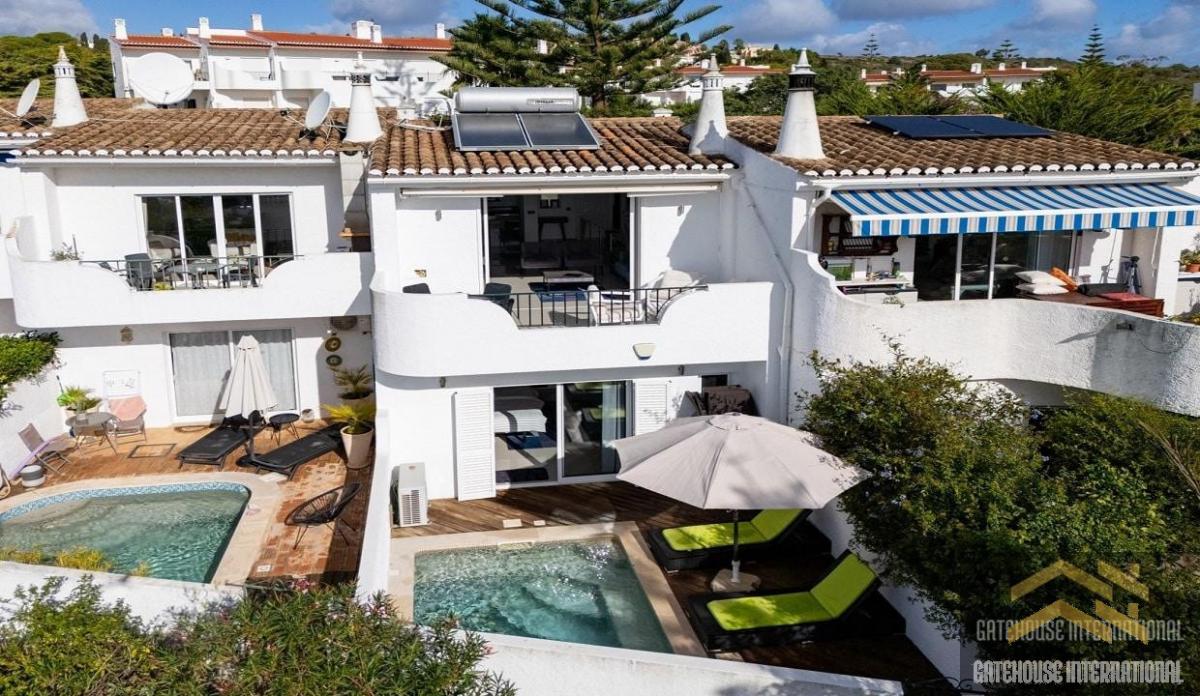Sea View 2 Bed House in Praia da Luz Algarve - a renovated 2 bedroom 2 bathroom townhouse with south facing terraces with a plunge pool within close proximity to the beach. Built in 1988 and measuring 108m2 the accommodation comprises of an entrance, open modern living 1st floor accommodation with a lounge and diner with glazed doors to a south facing terrace, a modern kitchen breakfast area with 2 large bedrooms and 2 bathrooms. There are two further private outside areas, one to the rear with a plunge pool and the other to the front. in brief: - entrance - lounge and diner plus balcony terrace - modern kitchen - 2 bedrooms - 2 bathrooms - front & rear terrace - plunge pool Praia da Luz is situated in a very cosmopolitan summer holiday resort that used to be a major fishing town, especially from the 13th to the 16th century. To the east, stands the limestone and marl cliff, deeply gouged by running water. This whitish cliff is marked by a very dark rock formation that stands out against the landscape: it is the so-called Black Rock, a volcanic vein that extends from the Monchique Mountains to the sea. Praia da Luz is situated close to Luz centre with all amenities and the Faro international Airport is located within a 1h driving distance.Features