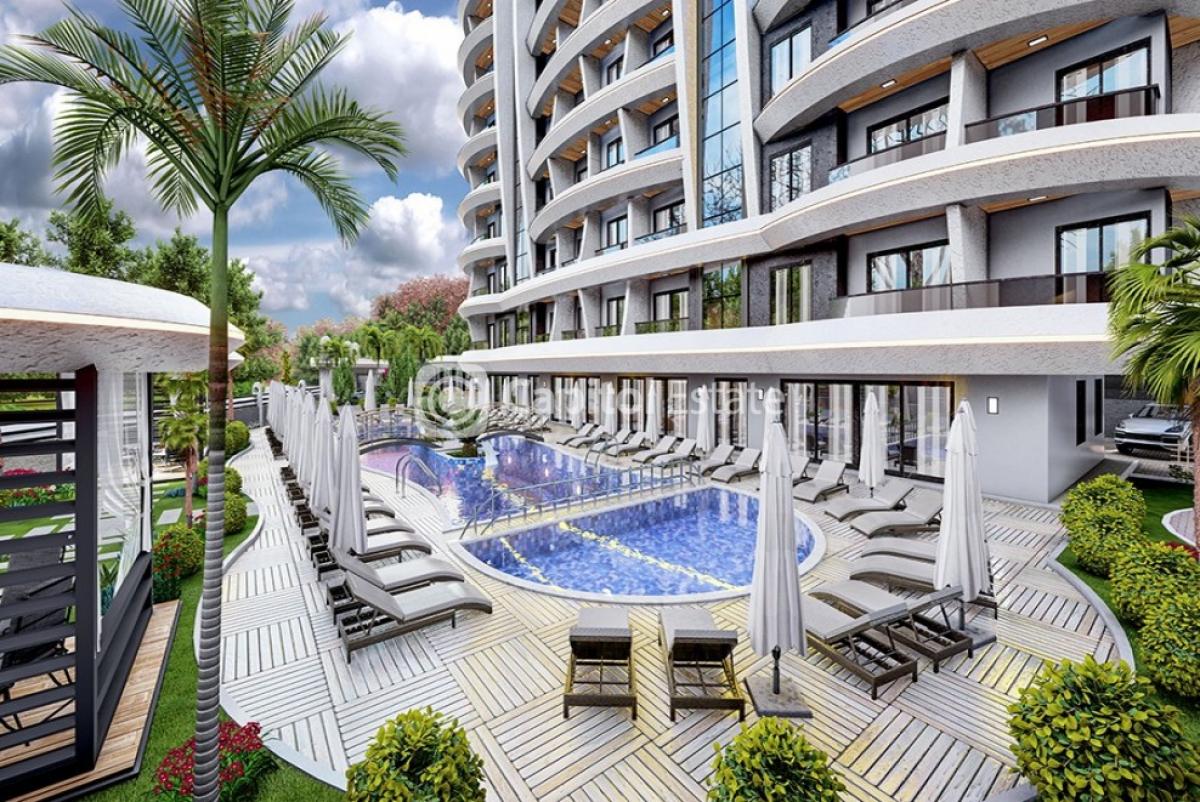 This very attractive new project is ideally located close to the center of the popular neighborhood of Mahmutlar. Mahmutlar is the largest and most popular neighborhood of Alanya, situated just about 15 mins drive East from downtown and much appreciated by local and international property investors because of its lively living environment and of course attractive prices. This complex is particularly eye catching with its modern architectural design and of course all the on site amenities such as indoor and outdoor swimming pools, turkish bath, sauna, gardens just to count a few coming with the project.* REF NR: 02346