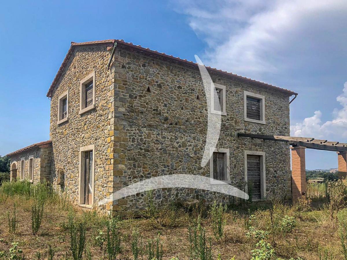 Located in Manciano, just 6 km from the town center, this charming newly built stone farmhouse offers breathtaking panoramic views of the surrounding Tuscan landscape. Set on a hilltop overlooking vineyards and olive groves, it's an ideal retreat for those seeking peace and a closer connection to nature. The property is surrounded by approximately 4.5 hectares of land, divided between arable land and woodland, ensuring privacy and a serene environment.