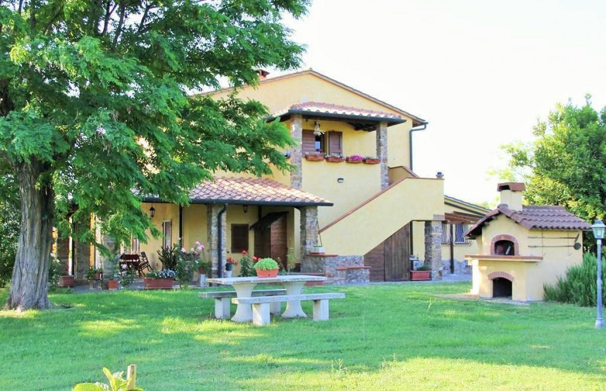 Outside, in addition to the apartments, there is a tool shed and a garage (150 sqm total), a 12x6 meter swimming pool with an equipped solarium, two wells, a barbecue, and a large garden. The restaurant hall, with a kitchen and public veranda, completes the offering, making the property ideal for an agritourism business.