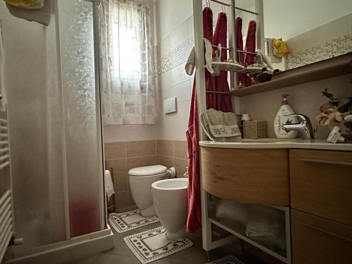 This semi-detached villa, spanning two levels and approximately 160 sqm, is in excellent condition. The ground floor features an entrance leading to a spacious living room with a balcony, a semi-habitable kitchen with access to a covered terrace and rear garden, a hallway, a small bedroom, and a bathroom with a shower. internal stairs lead to the first floor, which houses the night area, including the master bedroom with access to a large terrace and en-suite bathroom with a bathtub and shower, two double bedrooms (both with access to a balcony), a hallway, and an additional bathroom with a shower. The basement includes a tavern with a bathroom, accessible via internal stairs from the living room. The property features underfloor heating (on both levels), air conditioning, a central vacuum system, water softener, and a solar panel supporting the condensing boiler.