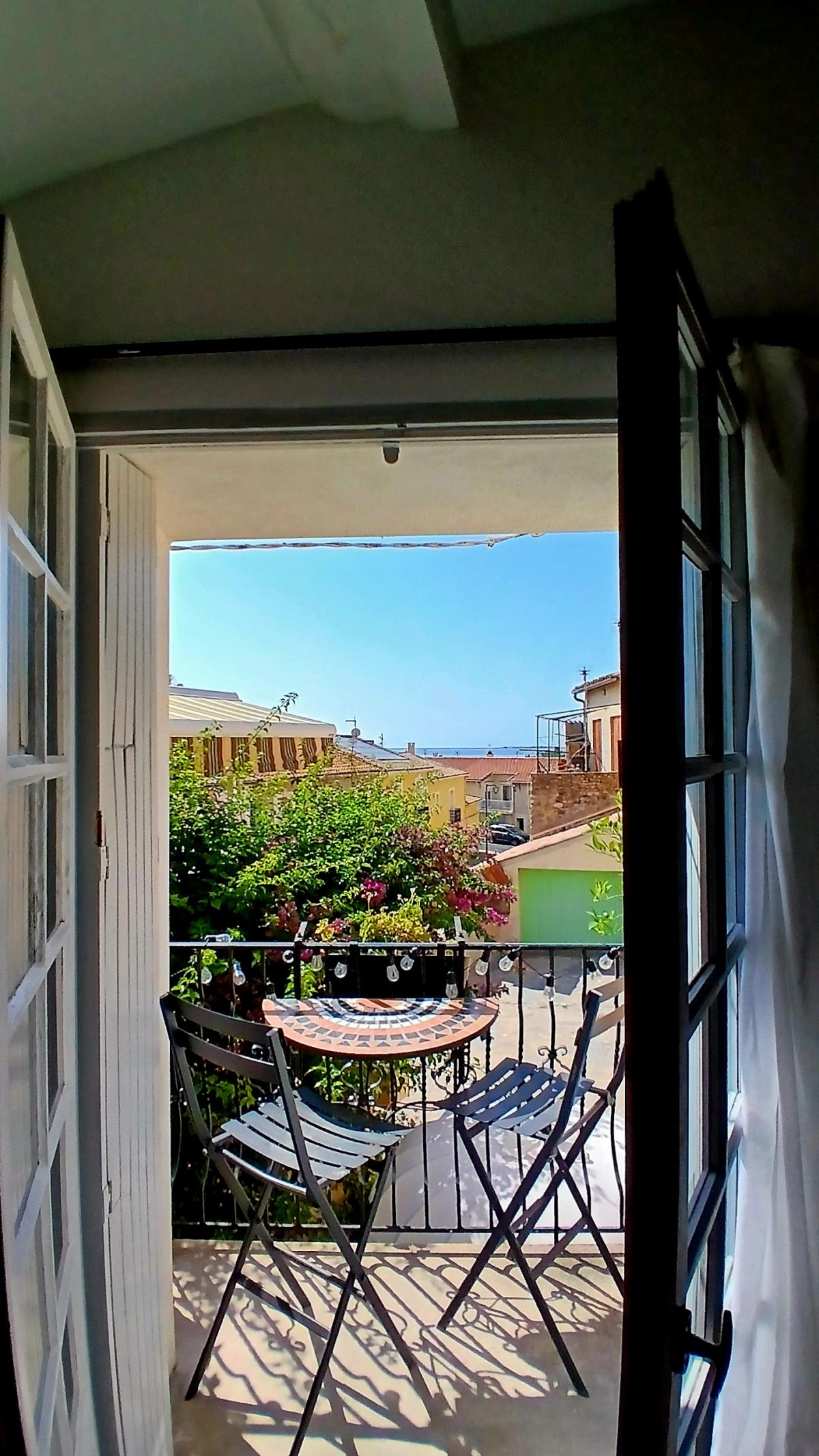 Outside = A courtyard area in front of the house of about 30 m2, perfect for having breakfast in the sun (does not belong to the house, but you can leave tables and chairs) + a balcony with view on the sea, south-east facing.