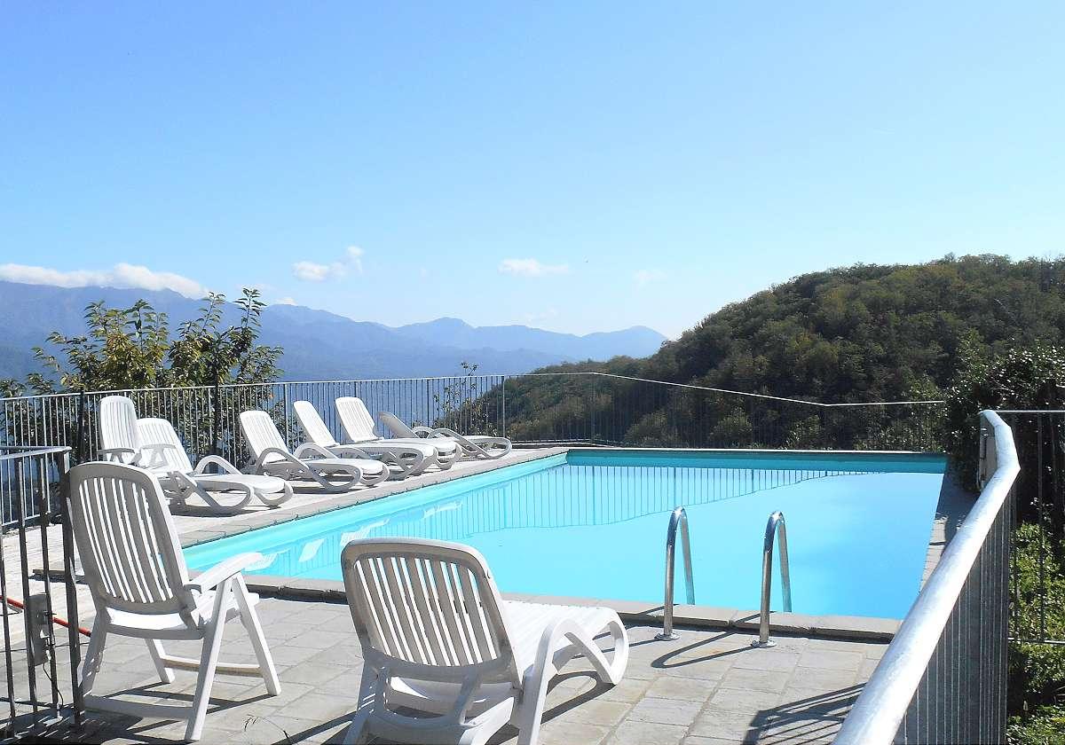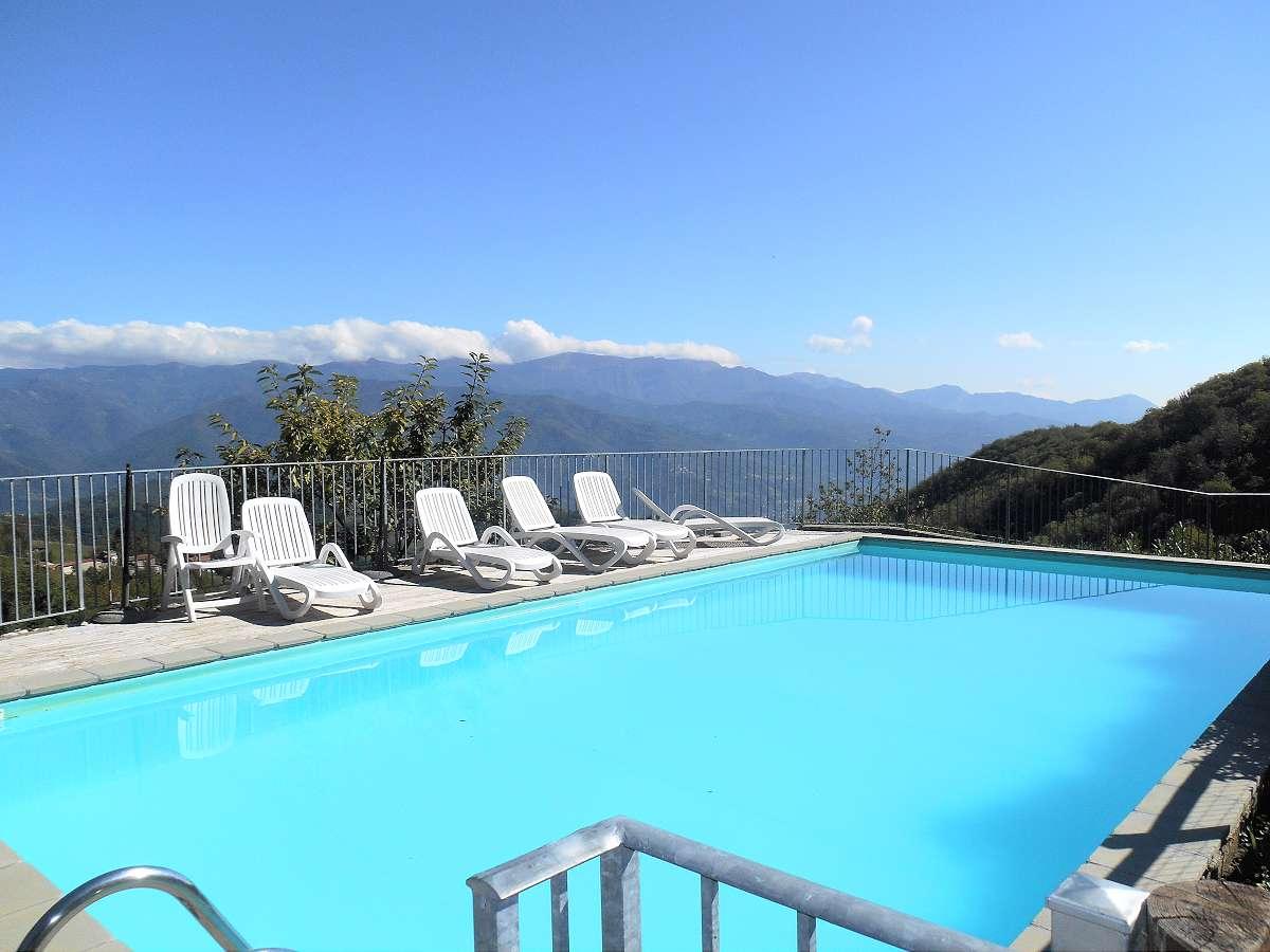 The property includes 6 hectares of land, partly garden, partly terraced arable land and partly woodland. The farmhouse has a large private area above the house and a beautiful terrace with spectacular views. The barn has its own private garden on 2 sides with panoramic views. The property also has a swimming pool in a beautiful sunny and panoramic position with a recently installed hydromassage jet.