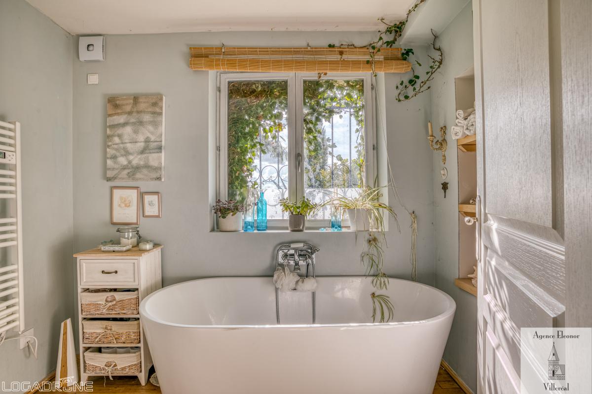 in the heart of the bastide town of Monflanquin, very beautiful stone house offering on street level an entrance hall, dining-room, fully equipped kitchen, living-room and toilet, on first floor a landing, lounge with kitchenette, 2 bedrooms, shower-room and toilet, on garden level a corridor, a bedroom, bathroom with toilet, lounge, laundry-room and cellar. Garage + cellar. Garden with stunning views over the valley. ideal as a family home or for a BnB Business. A must see, with Agence Eleonor !