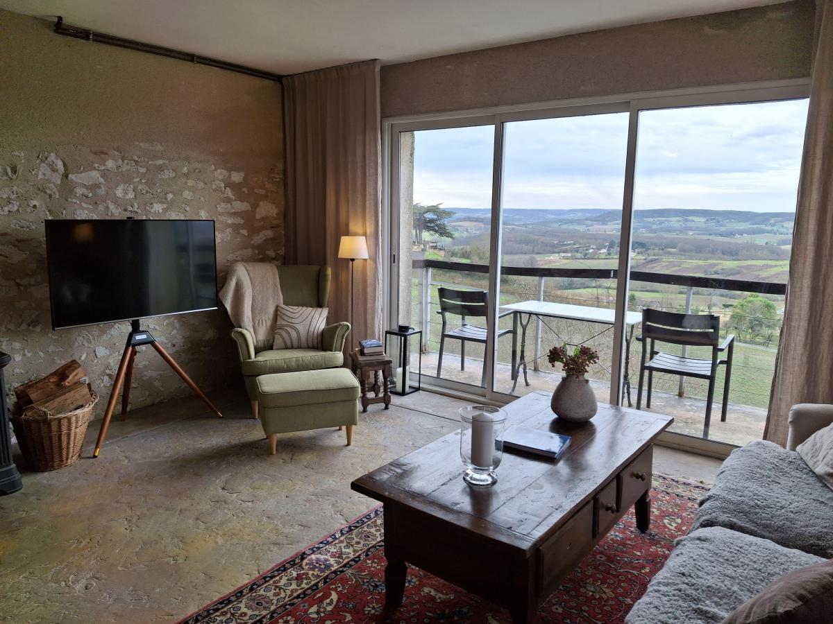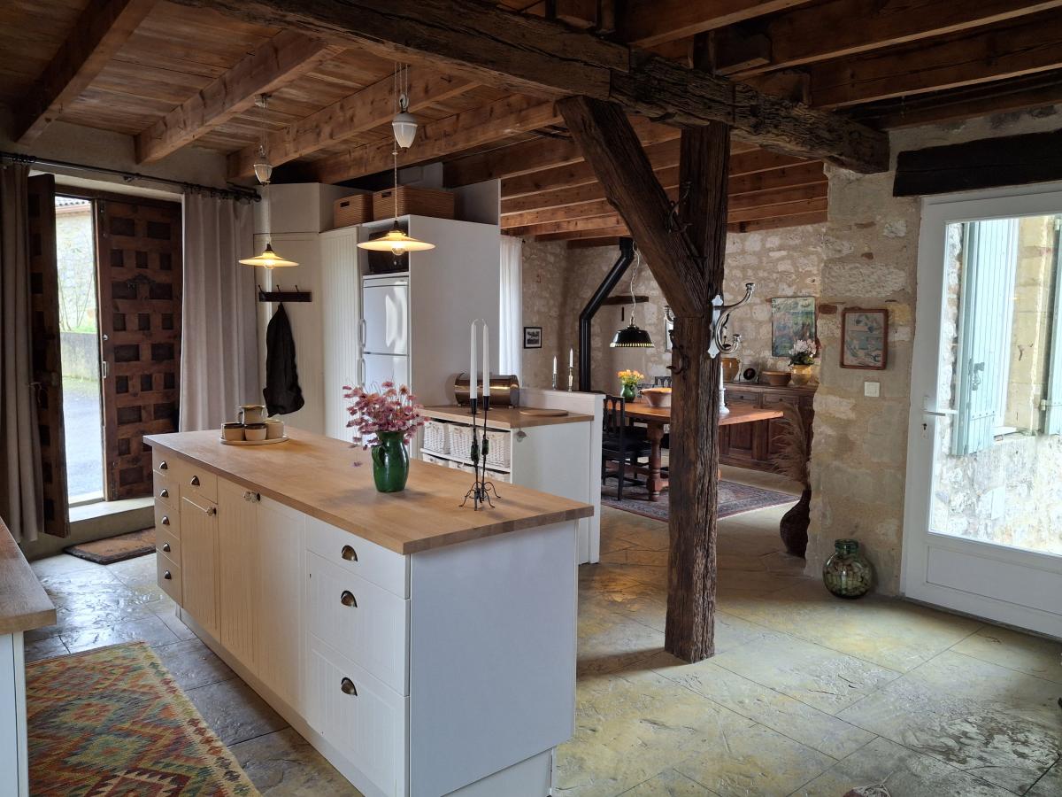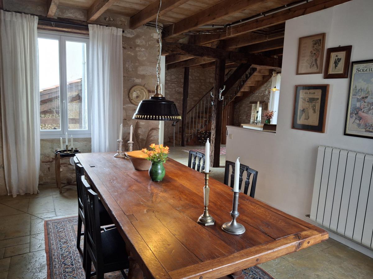in a lovely rural village set on top of a hill, 10mns drive from Monflanquin, this lovely stone house offers on the ground floor an open plan fitted kitchen / dining-room, separate toilet, a living-room with doors opening onto a balcony that offers panoramic views over the valley; on first floor, a corridor leads to a bathroom and 3 bedrooms including an ensuite with a covered terrace enjoying breathtaking views. in the basement, a large heated room with an old bread oven gives access to a cellar and a very private courtyard with hot tub. The property renovation through the years has preserved old features such as a wooden staircase with wrought iron rail, a "potager" (ancient cooker), fireplaces, a stone sink... A must see exclusively with Agence Eleonor !