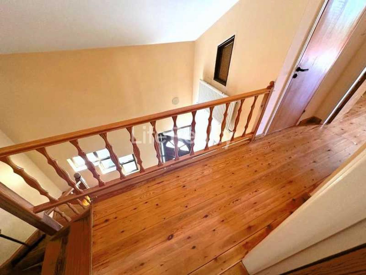 The ground floor of this inviting home features a spacious living room, dining area, separate kitchen, a guest WC, and a small bedroom, ensuring a warm and functional living space. Upstairs, there are two bedrooms and one separate bathroom, providing comfort and convenience. The balcony offers stunning mountain views, perfect for relaxing and enjoying the serene landscape.