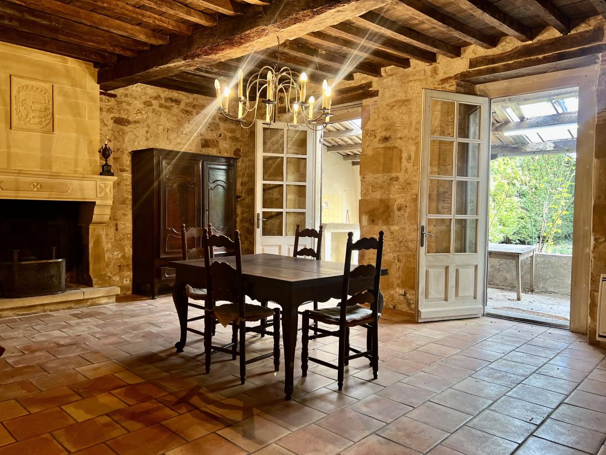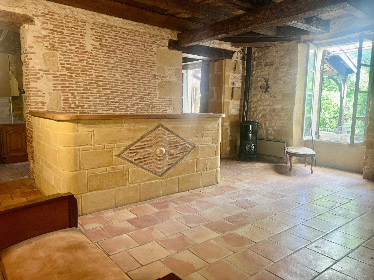 REDUCED in price - Stone house in the heart of the bastide village with a 700 m2 garden with trees and flowers, enclosed by walls. The house, approximately 280 m2, is spread over two floors.- Ground floor: there is an entrance hall, a corridor leading to a first living room with a bar, a second living room of 23 m2 with a fireplace, and an open-plan, fully equipped kitchen with a large open fireplace, an old bread oven and access to the dining room.