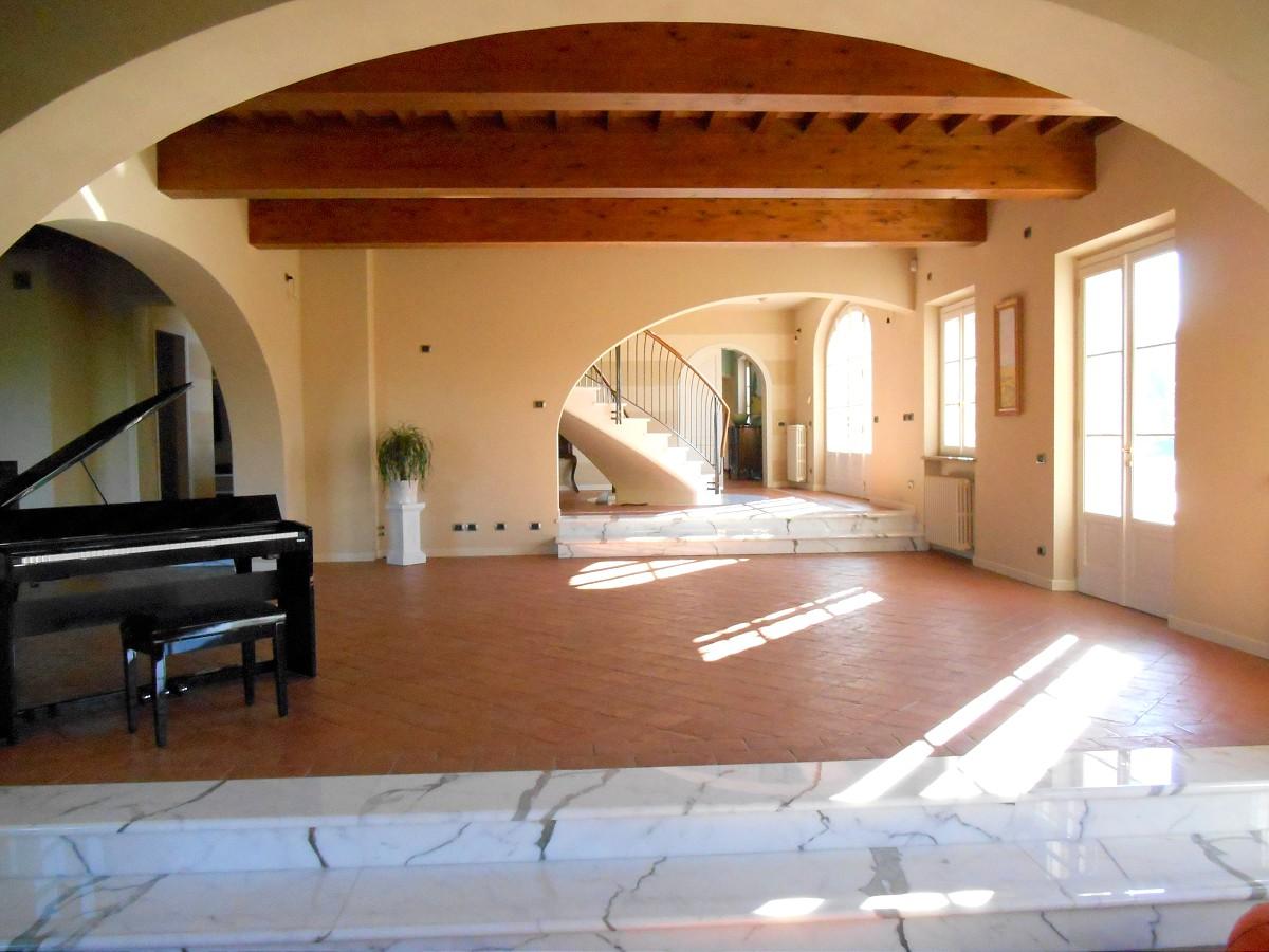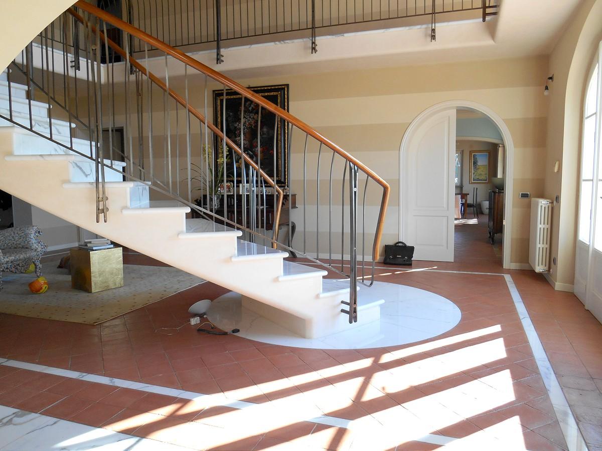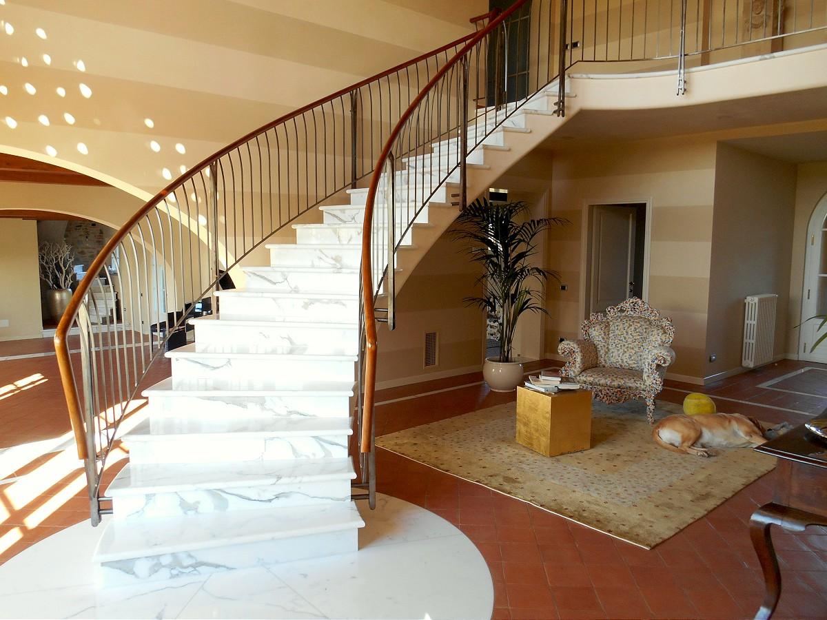 The house has been built by combining traditional Tuscan style such as beam with more modern elements such as the curved staircase in the entrance hall.