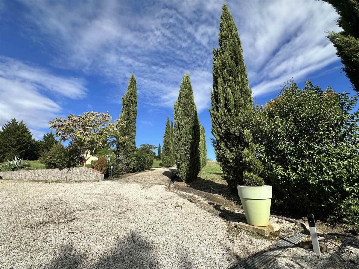 Surrounded by a 2-hectare fenced park, the property enjoys stunning panoramic views and an atmosphere of absolute tranquility. A 12x6-meter swimming pool sits at the heart of the garden, offering a perfect relaxation area for guests. Access is via a paved road and an electric gate, ensuring privacy and security.