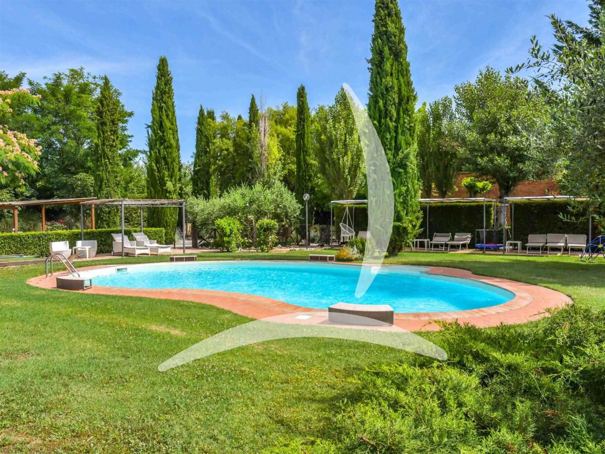 Nestled in the rolling hills of the Valdichiana region, this stunning country property offers a unique combination of tranquility, convenience, and historic charm. Thoughtfully restored, the main residence retains original features such as barrel-vaulted ceilings, large arched openings, and traditional materials like stone, brick, terracotta, and exposed wooden beams.
