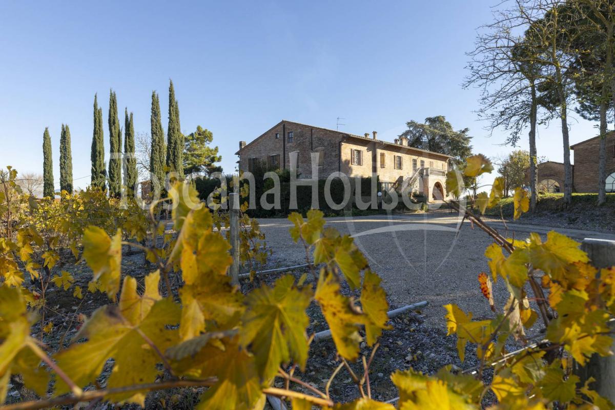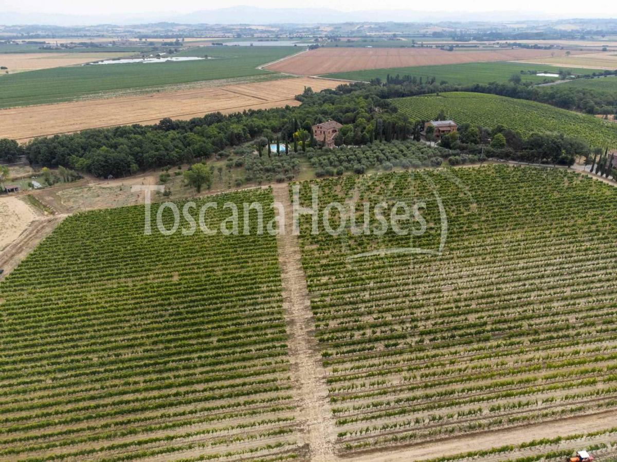 The estate for sale is situated on a hill in Montepulciano, covered with vineyards and olive groves, offering breathtaking views of the Valdichiana.