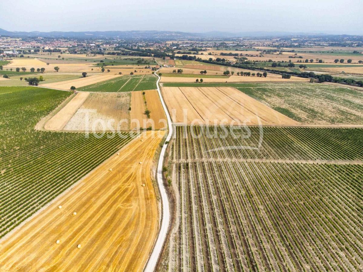 The property covers 60 hectares of land, spread across several bodies, on a hill in Montepulciano, covered with vineyards and olive groves, offering a panoramic view of the entire Valdichiana. Access to the property is via a well-maintained white road.