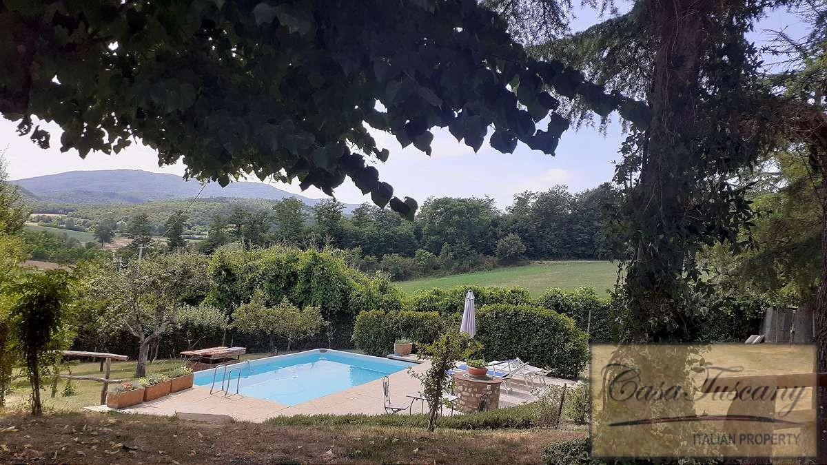 In the municipality of Monterchi, in a splendid hilly and sunny position, an ancient farmhouse as well as a guest annex and outbuildings, all surrounded by a private park with olive trees, ancient trees and fruit trees.The stone farmhouse, completely renovated, is divided into three floors distributed as follows: apartment with independent access on the ground floor comprising entrance hall, living-dining room, kitchen, two double bedrooms, two bathrooms, wardrobe.