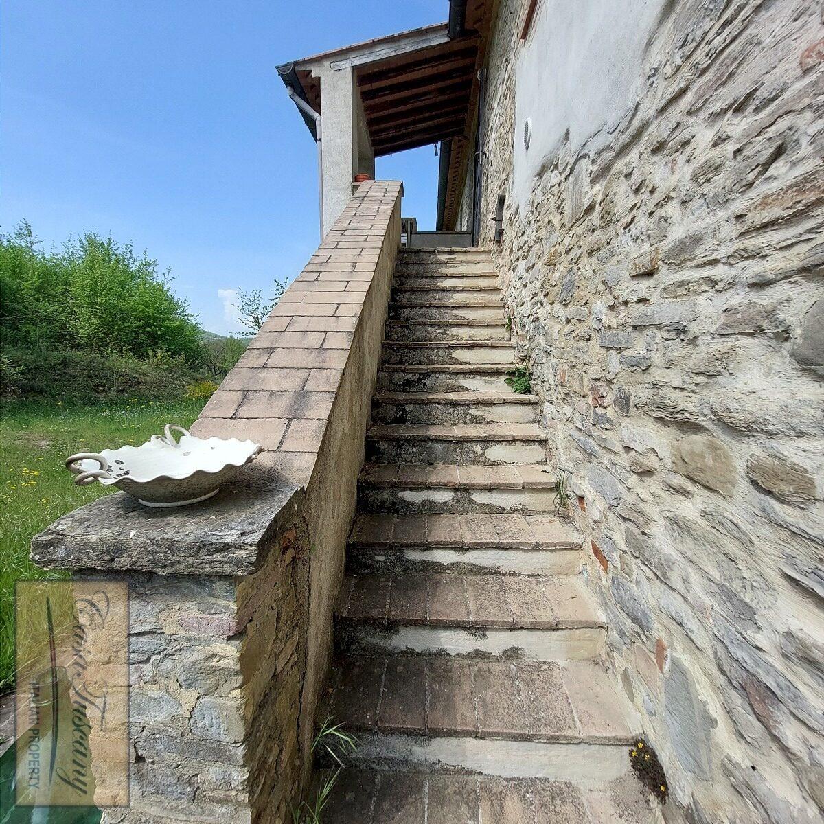 Apartment on the first floor: about 110 square metres, external staircase with loggia, large living room with antique fireplace, three bedrooms, bathroom, kitchen.
