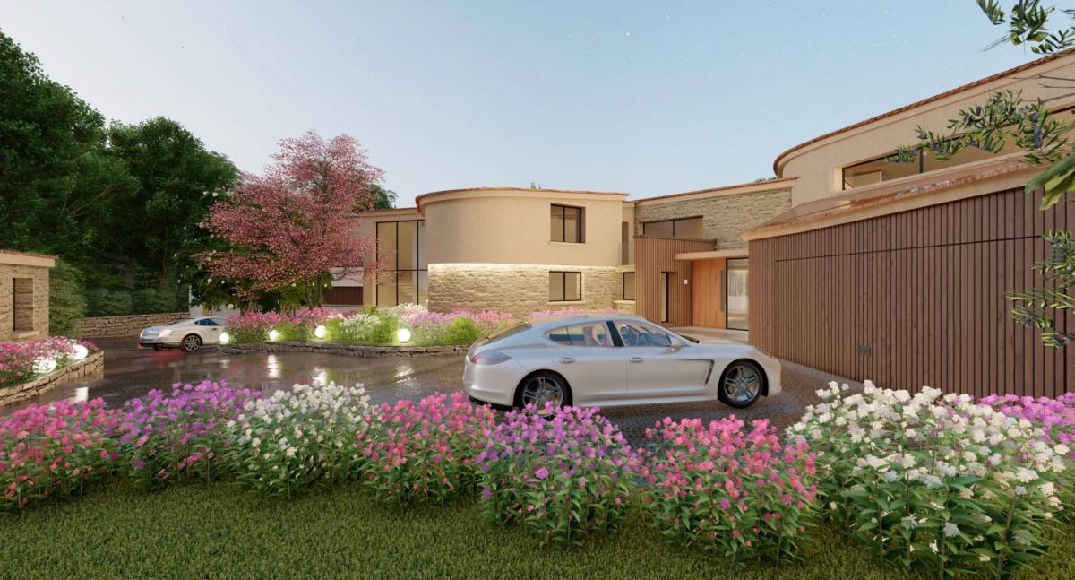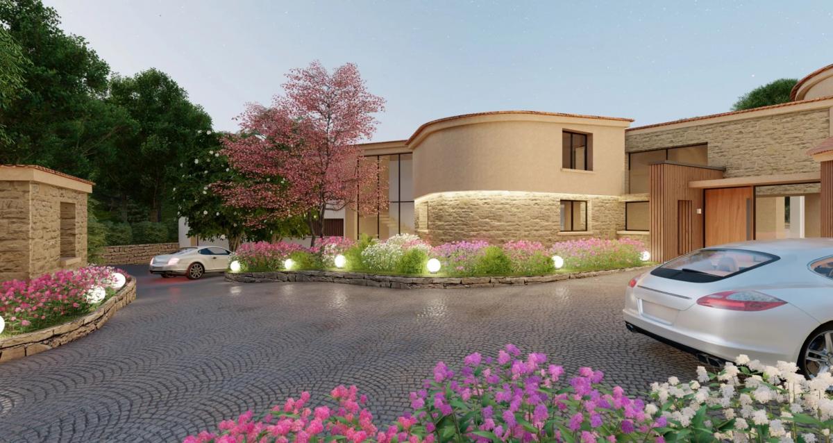 in the Parcs de Mougins area, a magnificent renovation and extension project for a Couëlle-inspired villa. Set in flat grounds of over 10 000 m2, the property will offer around 1,000 m2 of living space, comprising 7 en suite bedrooms, a 52 m2 independent caretaker's flat, a 8-car garage and an indoor swimming pool. The flat, family-friendly garden includes a large swimming pool with pool house.