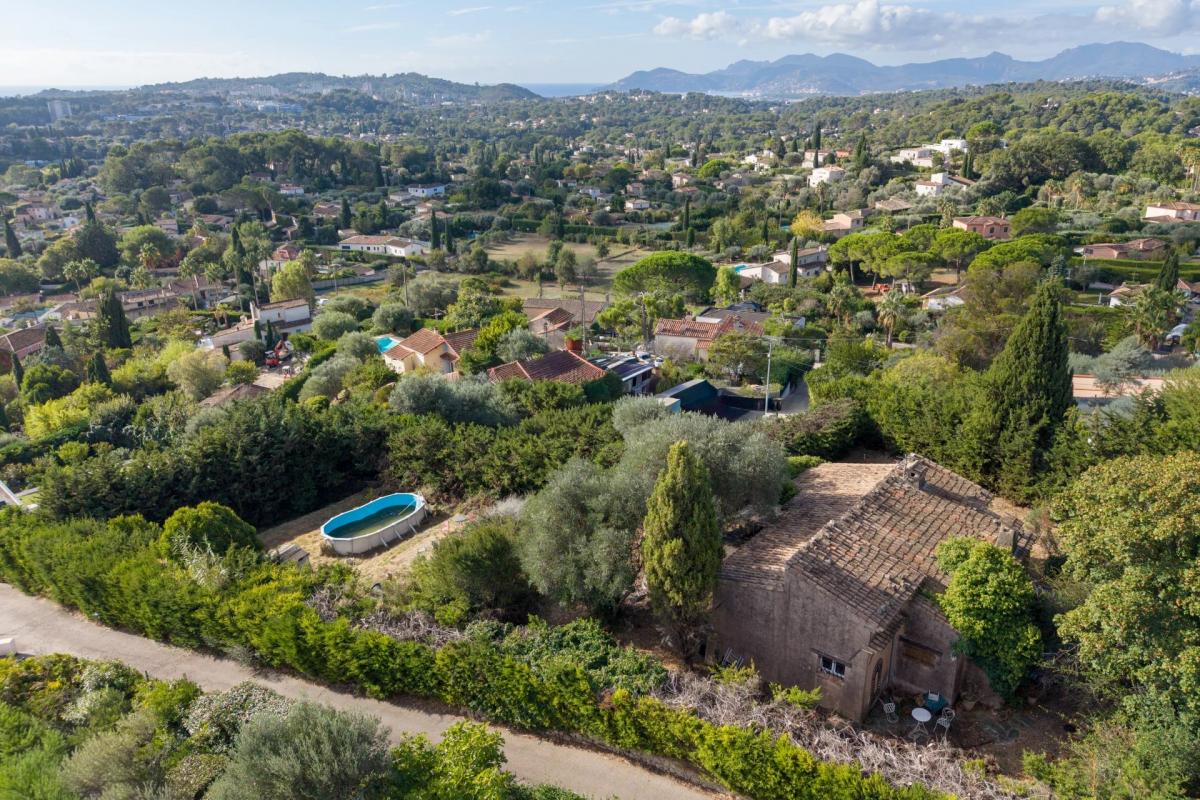 Located in a residential area, this property offers approximately 2,000 m2 of land in an elevated position, enjoying panoramic views of the surrounding hills all the way to the bay of Theoule.