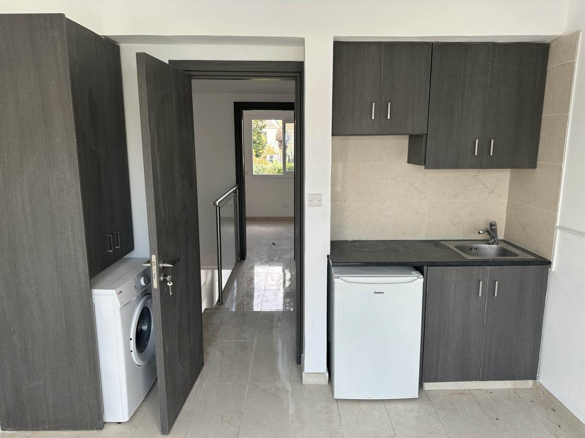 The second studio, located on the upper floor, also offers a bright and spacious living area with its own private balcony. From the balcony, you can enjoy views of the surrounding buildings and lush greenery, while catching a distant sea breeze. This is the perfect spot to watch the stunning Cypriot sunsets with a glass of wine in hand. The apartment is fully equipped with all necessary utilities, including air conditioning and a modern kitchen, making it ready for immediate occupancy.