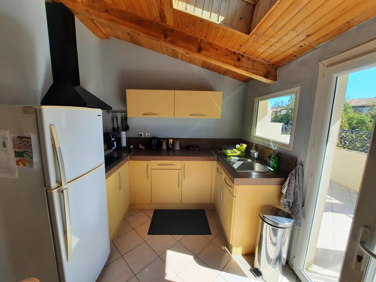 1st = Hall of 7 m2 + kitchen of 9.8 m2 with access to terrace of 10.4 m2 + bedroom of 18 m2 en suite with shower room of 5.6 m2 (shower, lavabo, wc).