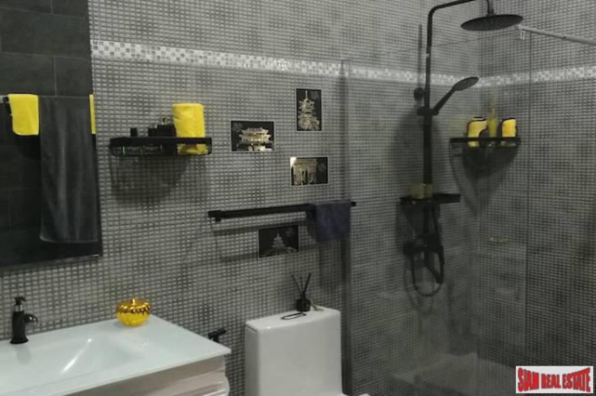 The land plot is huge at 768 sqm and has a 4m x 12m swimming pool surrounded by a large green garden, sala and outdoor terrace. There is a pump room for the swimming pool with extra storage. In addition there is a car park for two cars with a remote control gate.