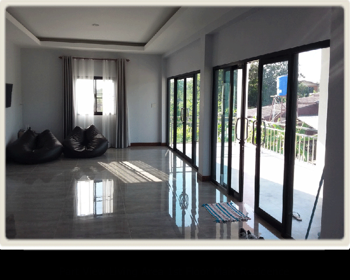 If you are looking for a permanent residence, or even a get away holiday retreat, this could very well be the property you've been looking for. Designed and built as 'resort style living', it offers numerous 'retreats' within a retreat, with open plan living as the main concept. There are few, if any private residences available in Thailand that offer this type of comfortable and relaxed living. Set in the foothills of Udon Thani Province, it is nestled on the outskirts of a small village with no more than a few hundred people. It offers a very quiet, fresh air, country lifestyle for those who want to get away from the hustle and bustle of cities, yet close enough to shopping and nightlife at their fingertips just a few minutes away in the town nearby. The Udon Thani International Airport is just 80 mins away. Consideration may also be given to a Rent-To-Buy Option. Excluding the Main Residence, the property began being developed in 2011 with tree planting, landscaping design, and some smaller outer buildings. In 2016 the Main Residence was completed. Set on 2 Rai (Nearly 1 acre) of beautiful fertile land, it is completely developed with an abundance of trees and plants. Mango, Bannana and Berry Trees adorn the property. An area opposite the huge entertaining area has scope to be developed with either an additional house or recreational/pool area. The land is divided into two separate titles with the Main Residence enjoying 1 title and the remainder of the property on the other. In total, this property features 5 bathrooms & bedrooms This property also offers the optional opportunity to take over a very modern and easy to run Restaurant/ Wine Bar should the potential purchasers wish to avail themselves of this, thus enabling an income for themselves, a spouse or friend.